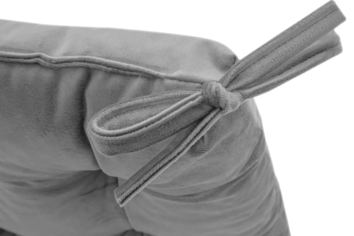 Estetyczne pikowanie i elegancka, welurowa tkanina w szarym kolorze urozmaicą aranżację kuchni, jadalni czy pokoju dziennego.