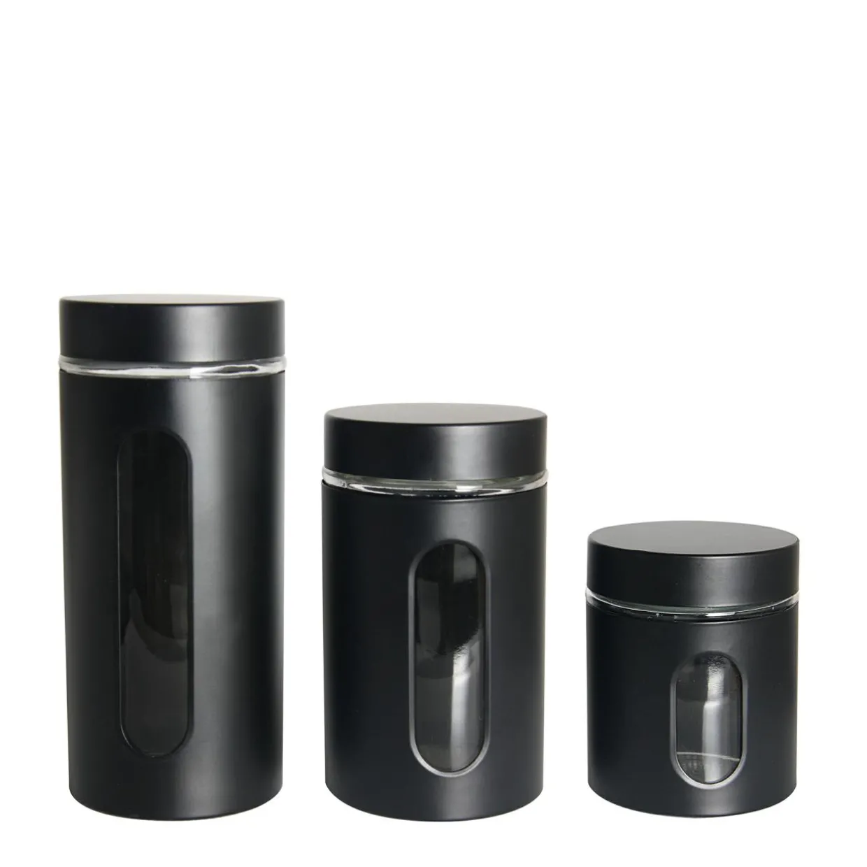 Pojemnik szklany z metalową pokrywką czarny 1400 ml