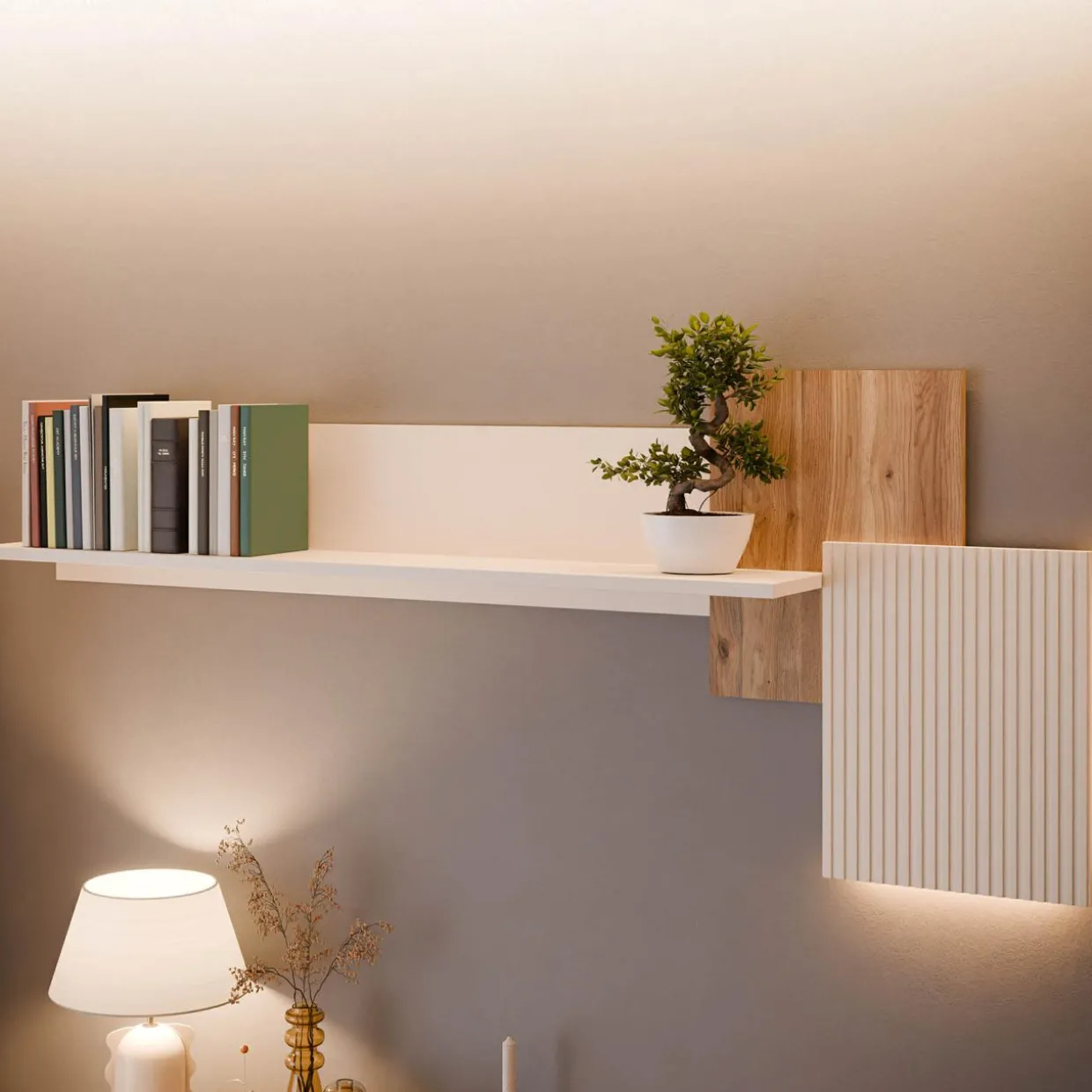 - Tylna ścianka półki sprawia tworzy ciekawe tło dla ustawionych na półce przedmiotów.