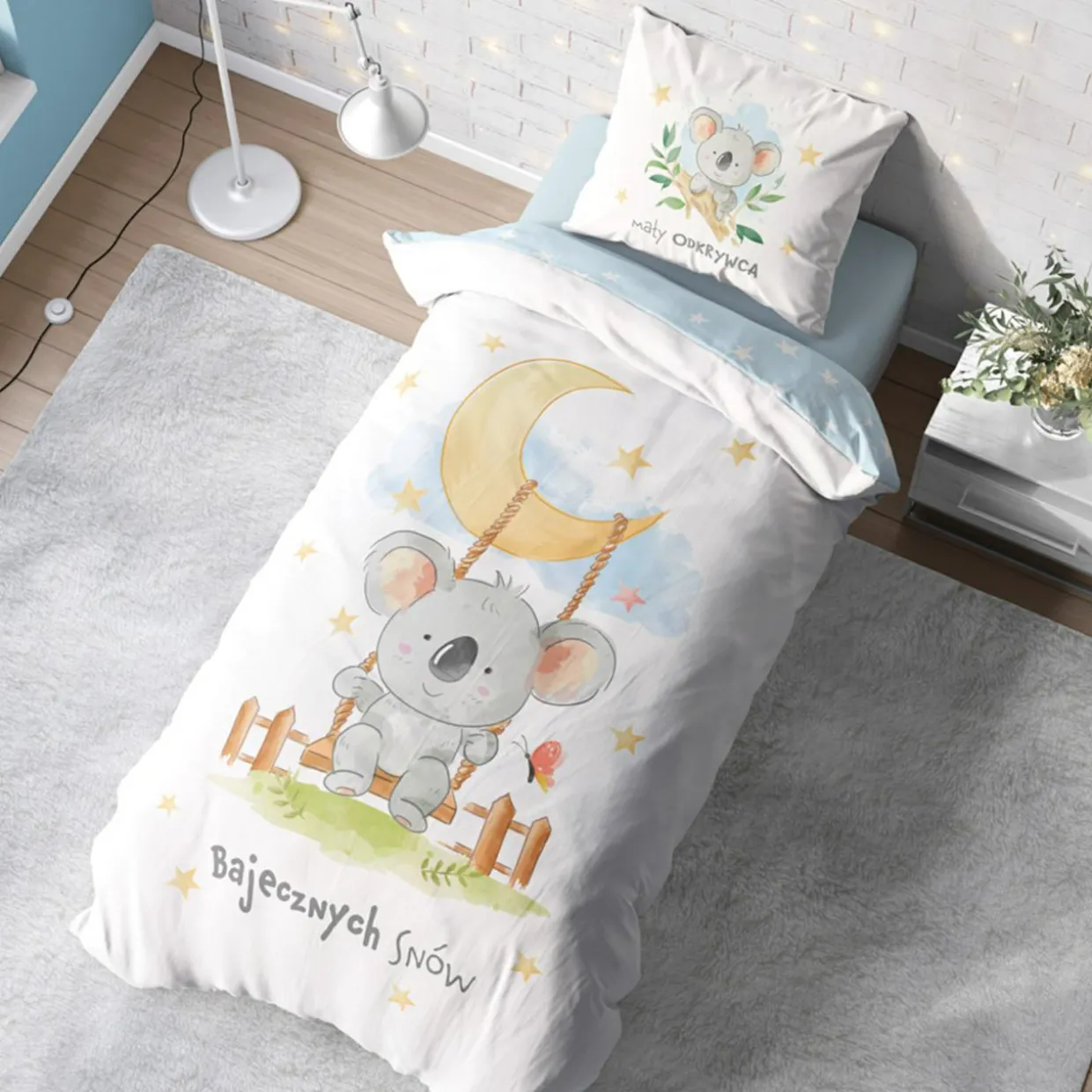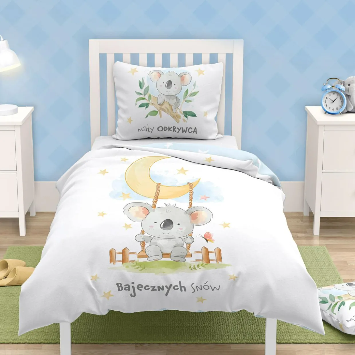 - Twoje dziecko marzy o tym, by odkrywać nieznane gatunki, starożytne cywilizacje lub nowe lądy? Stwórz maluchowi przestrzeń, która będzie sprzyjać kreatywności. Każde wyspane i wypoczęte dziecko będzie miało energię do nauki i podejmowania nowych wyzwań. Zadbaj o zdrowy sen swojego malucha. Spraw mu komplet pościeli z wizerunkiem uroczego misia koali.