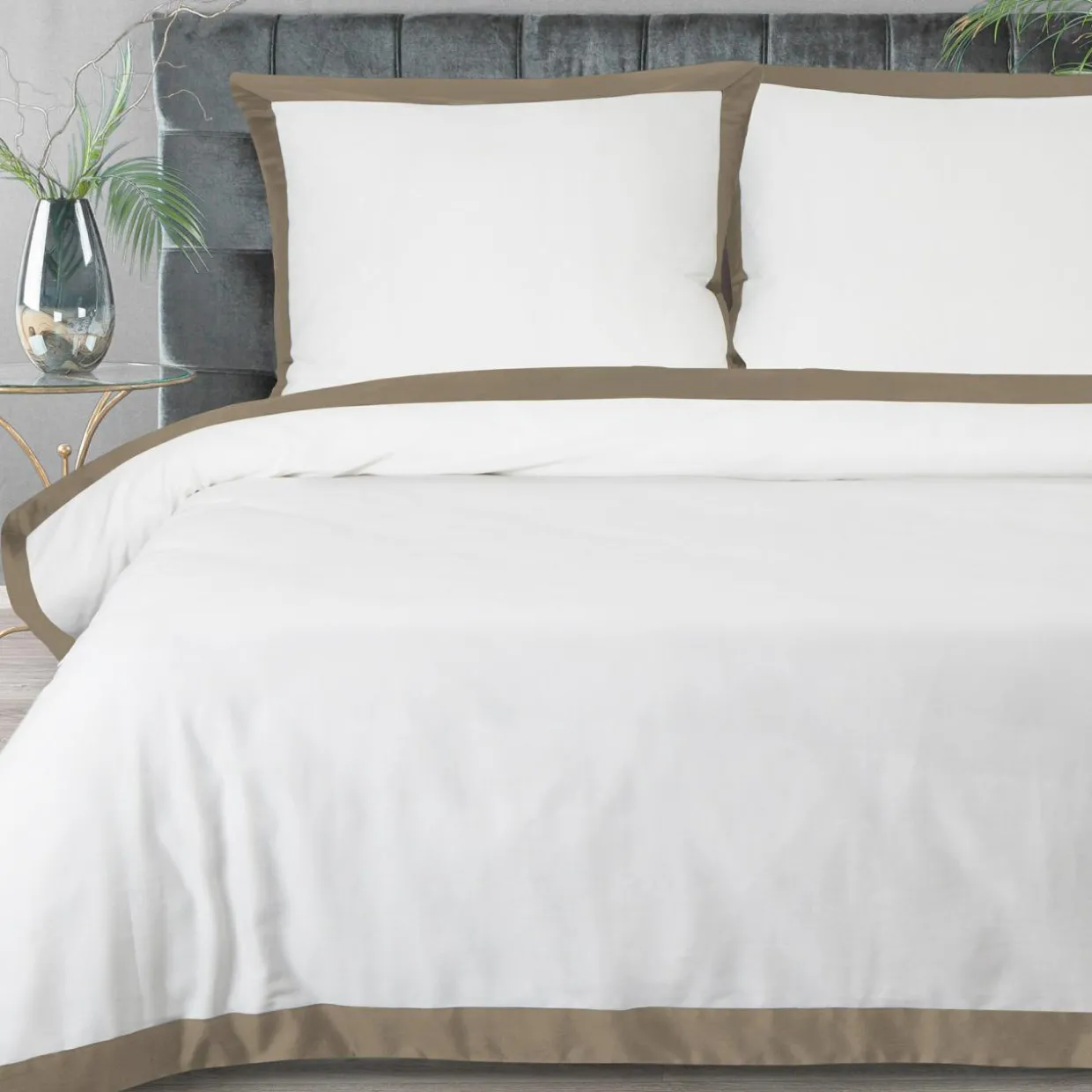 Pościel LAURA wpisze się w nowoczesną aranżację. Kontrastująca z bielą kawowa listwa nadaje jej elegancki wygląd.