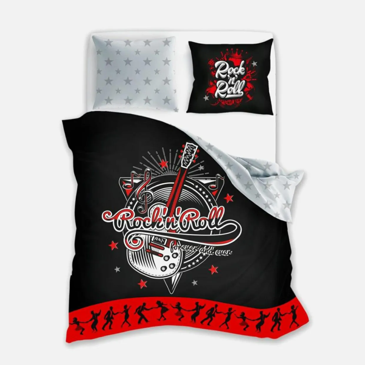 Pościel bawełniana ROCK z kolekcji FLUO podkreśli muzyczne zainteresowania w młodzieżowej sypialni.