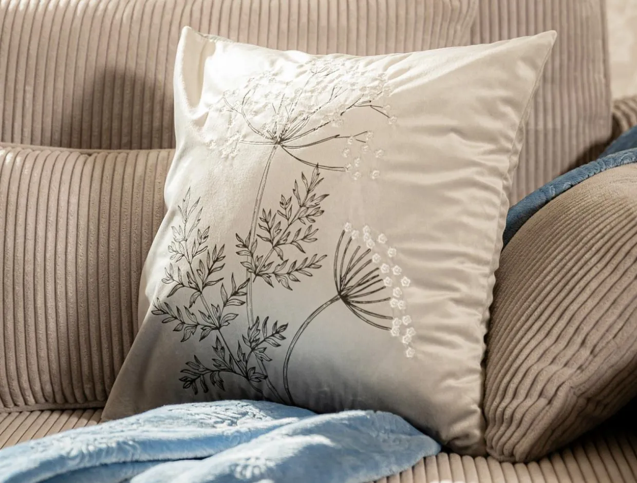 Poszewka welurowa z haftem jasnoszara ANISE 45×45 cm