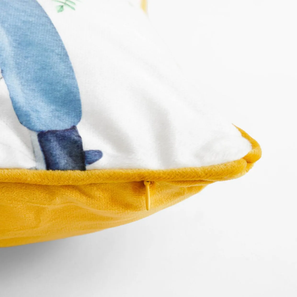 - Żółte i niebieskie odcienie poszewki sprawią, że aranżacja zyska pozytywny akcent.