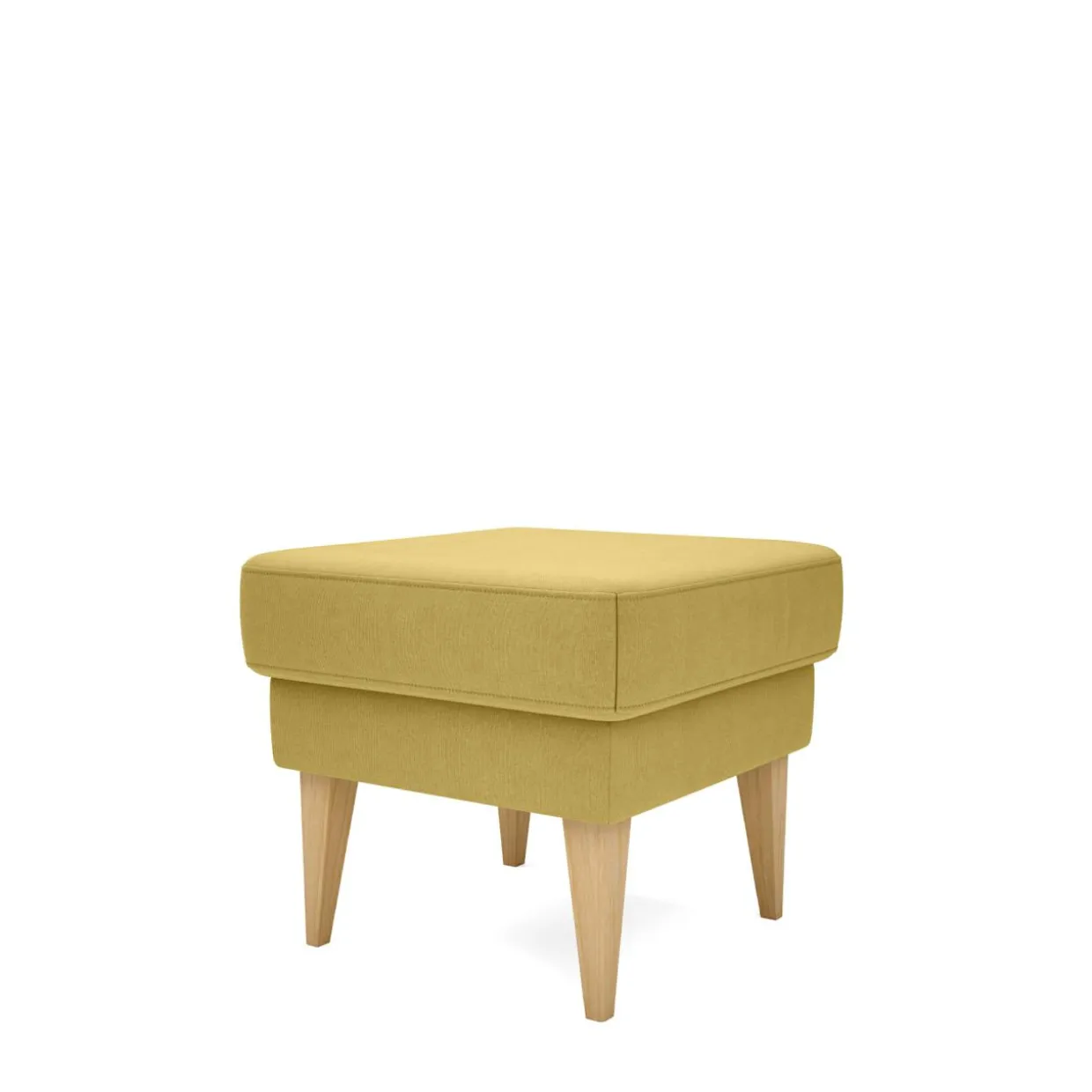 Puf TACO został przeszyty tkaniną PEGASUS – materiałem o właściwościach utrudniających wchłanianie cieczy. Nogi mebla zostały wykonane z drewna w jasnym kolorze.