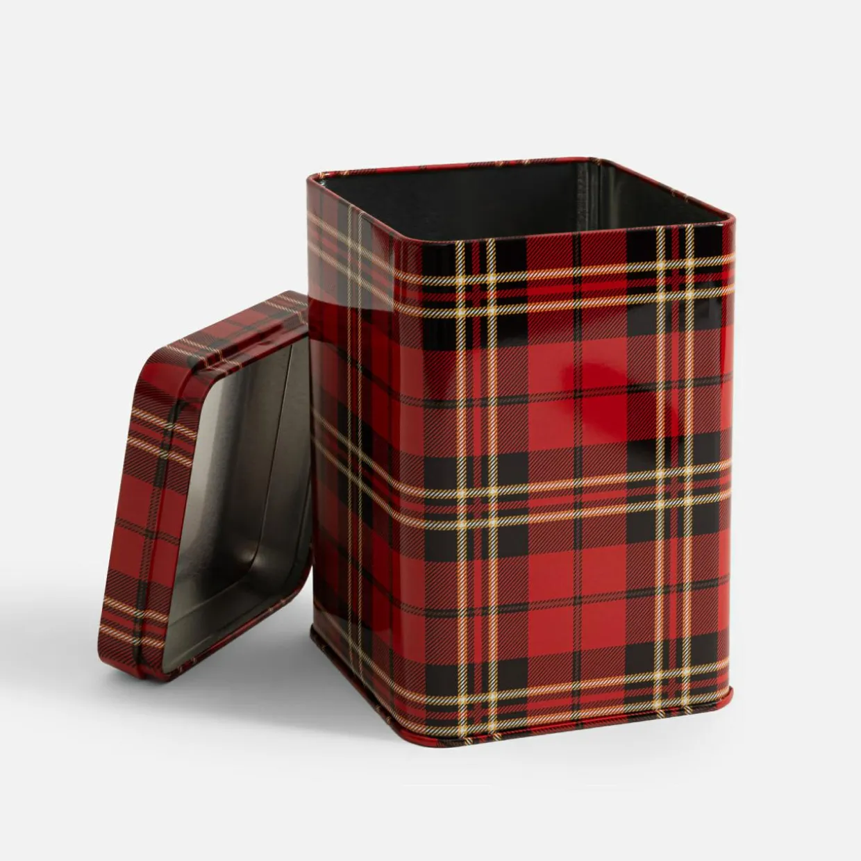 Puszka metalowa do przechowywania CZERWONA KRATA 1450 ml
