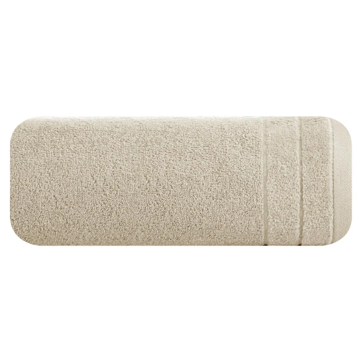 Beżowy ręcznik będzie ładnie się prezentował na tle kremowych ścian oraz pudrowego różu.