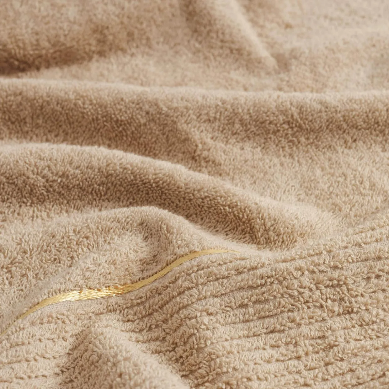 - Złota lamówka ręcznika sprawia, że złożony na półce stanowi prawdziwą ozdobę łazienki.