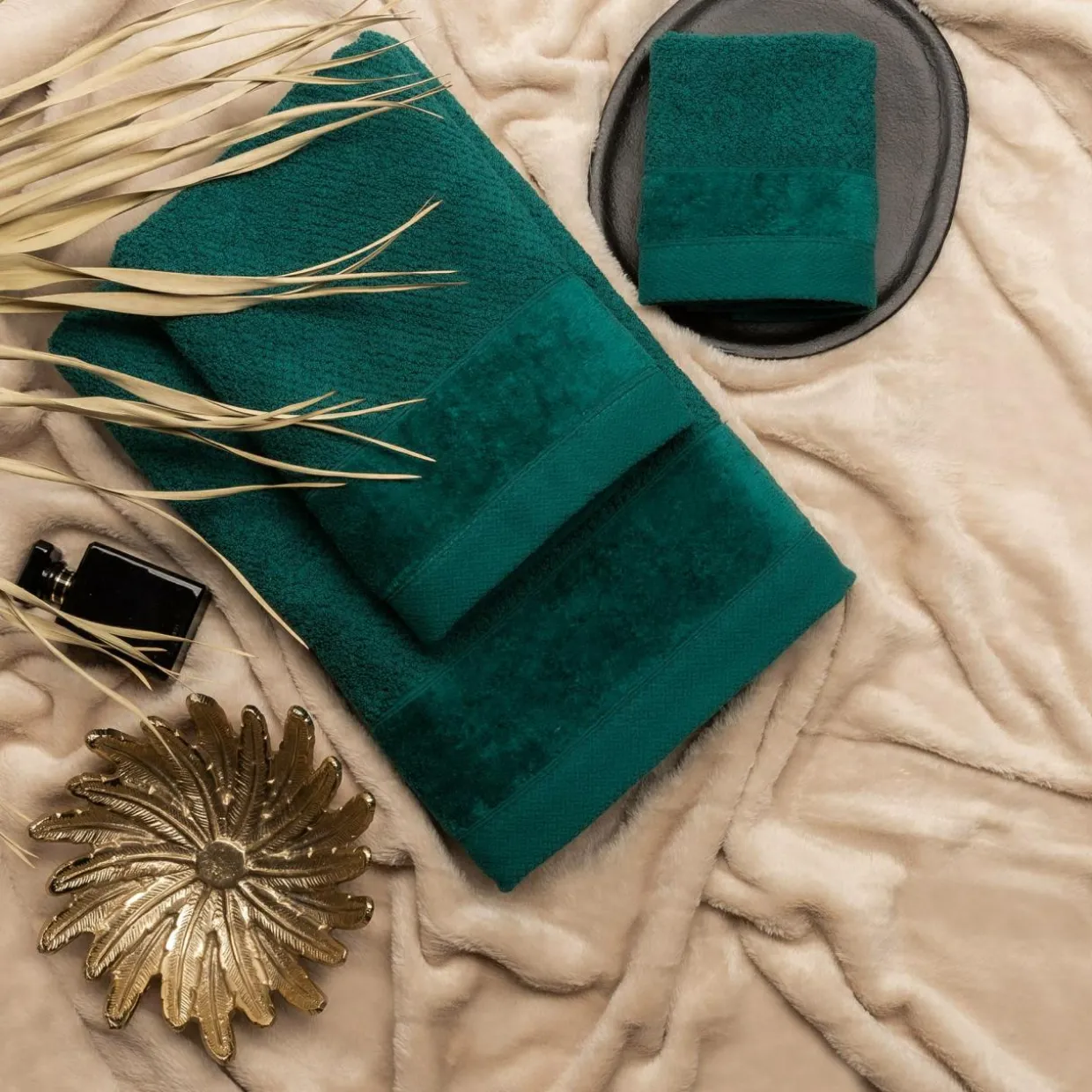 - Stylowy kolor ręcznika – butelkowa zieleń