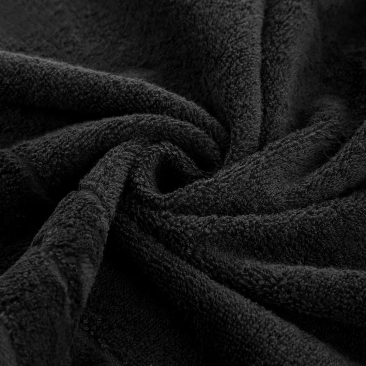 Czarny ręcznik będzie ładnie się prezentował na tle białych ścian oraz soczystych kolorów, np. magenty.
