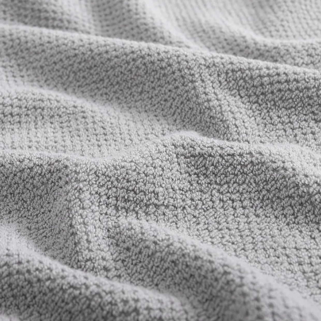 Miękki, jasnoszary ręcznik BOVI ozdobi nowoczesną łazienkę.