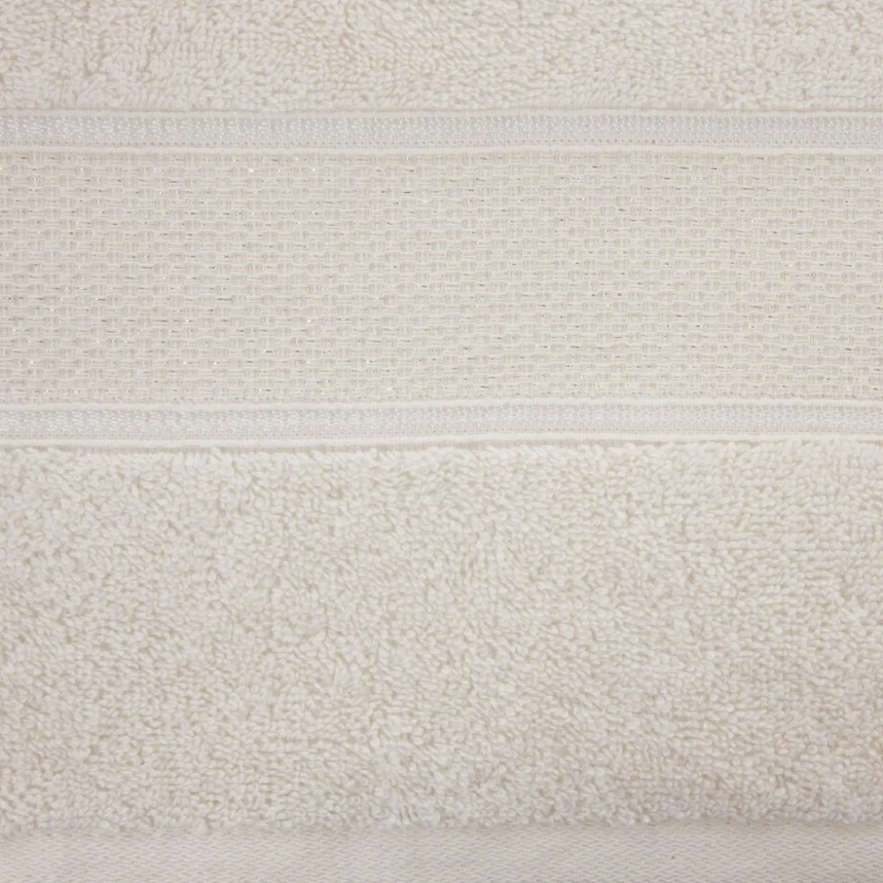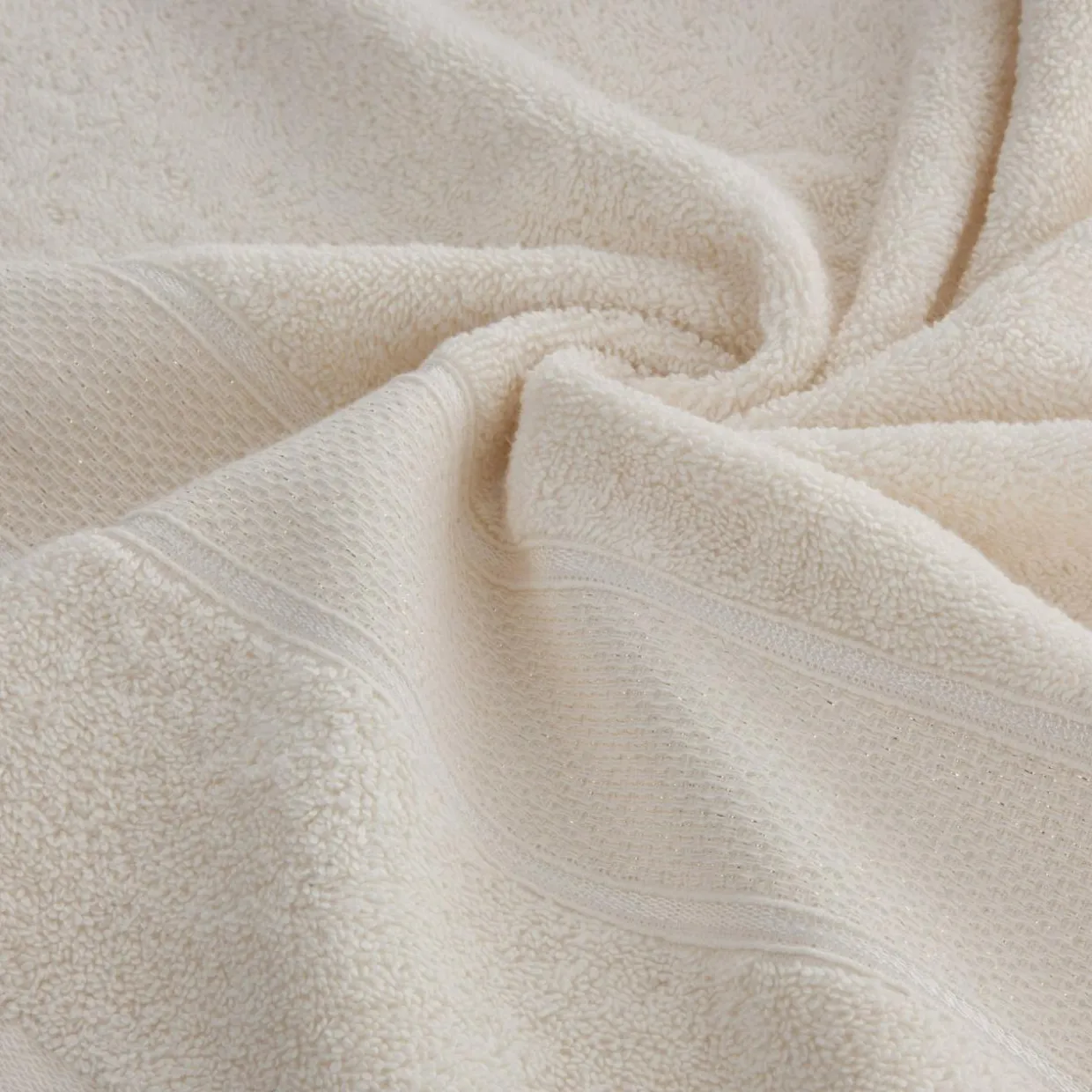 Bawełniany ręcznik z kolekcji LIANA wyróżnia się połączeniem prostego designu i ozdobnej bordiury z pobłyskującą nitką.