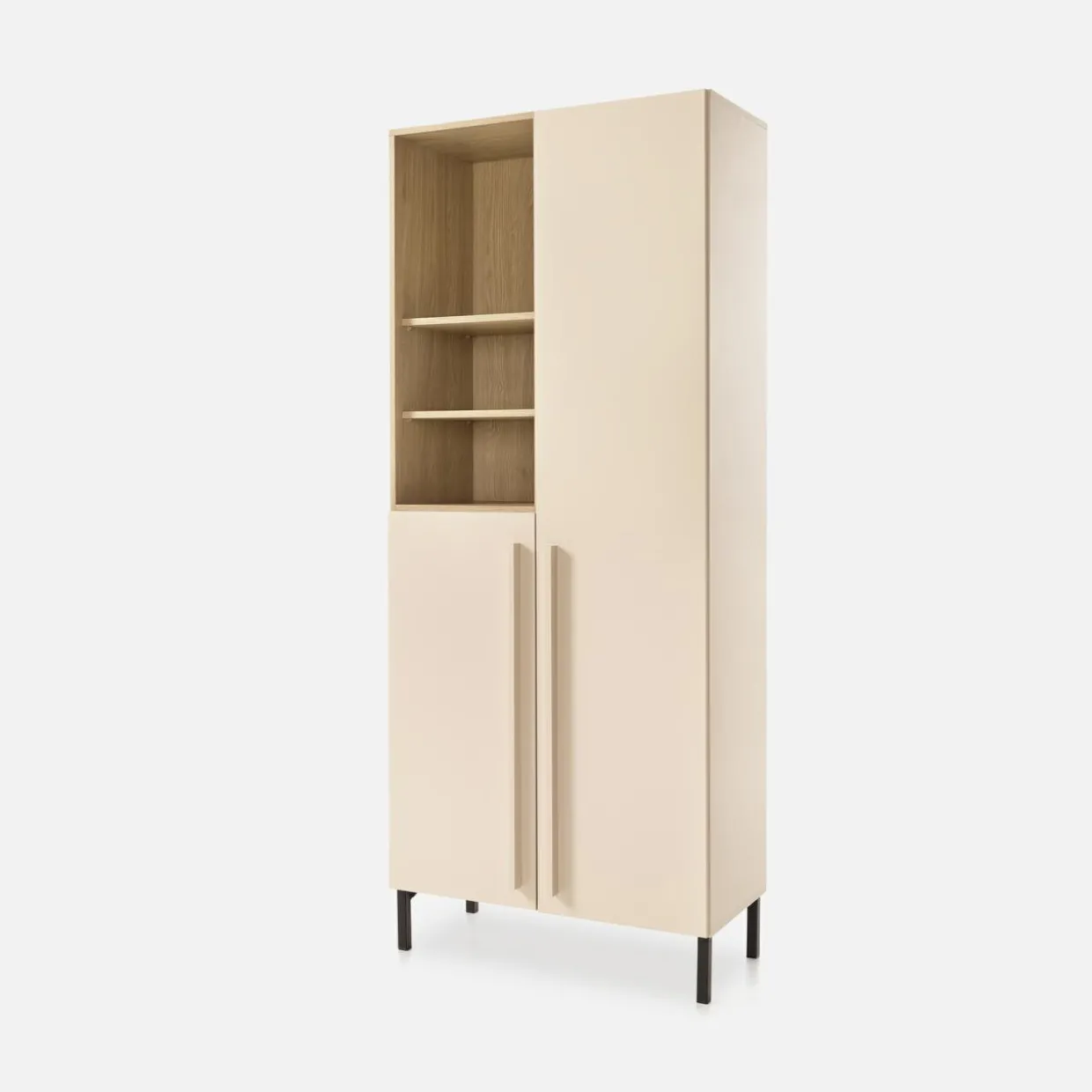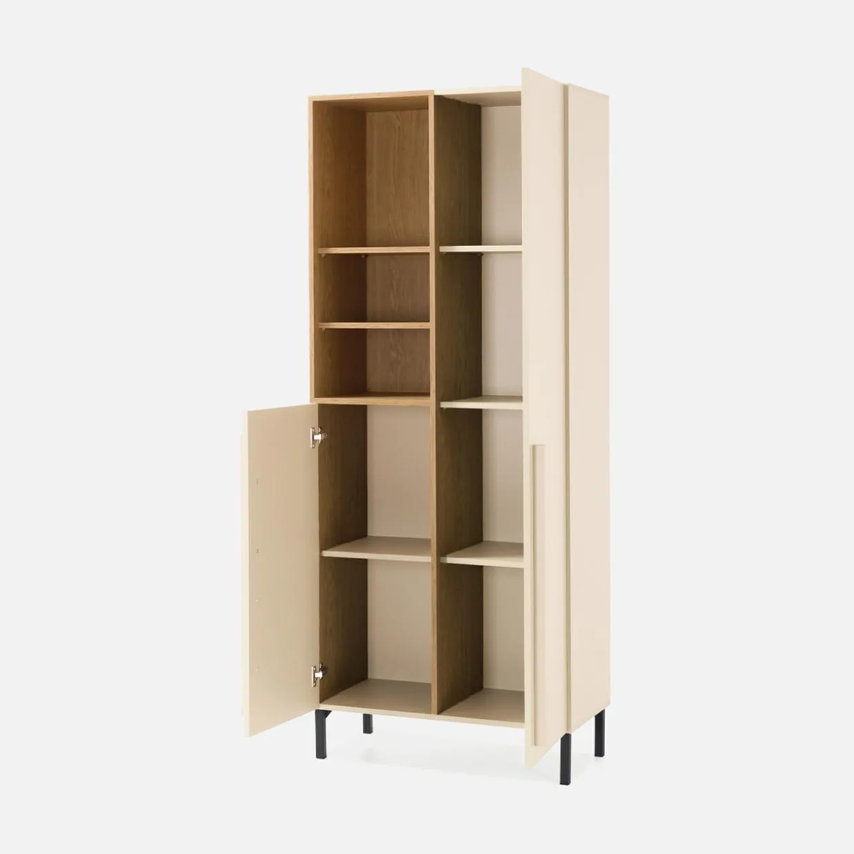 Regał SERGIO większość półek ma ukryte za frontem, dzięki czemu na co dzień zachowasz porządek.