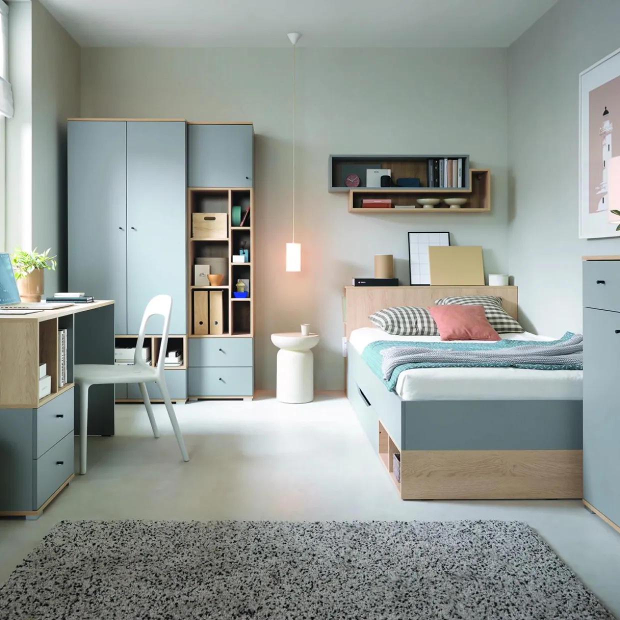 - Połączenie dębu biszkoptowego z szarym platynowym zachowuje harmonię w pokoju, zachęcając do spędzania czasu we własnym pokoju.