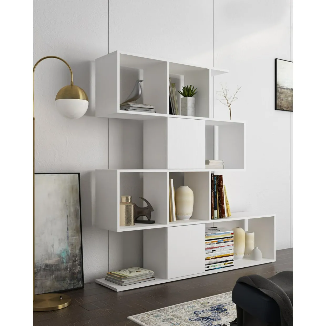 Zadbaj o intrygujące dopełnienie aranżacji z białym regałem SCALAR.