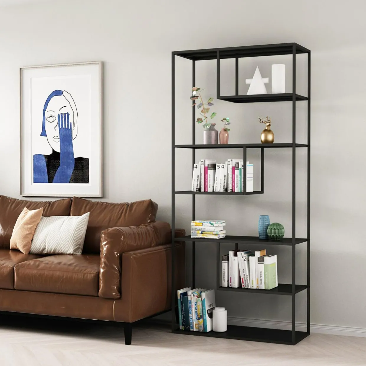 Nowoczesny regał SYLVERO ozdobi Twój gabinet lub pokój dzienny swoją niecodzienną geometryczną formą. Stwórz strefę relaksu przy lekturze, ustawiając przy nim fotel z podnóżkiem.