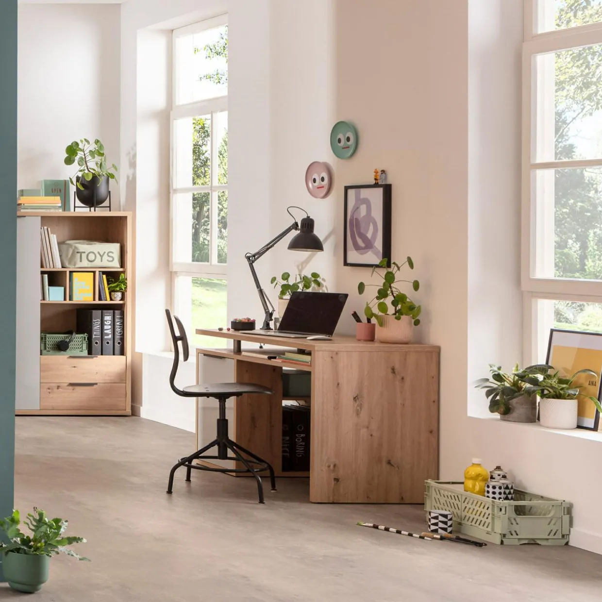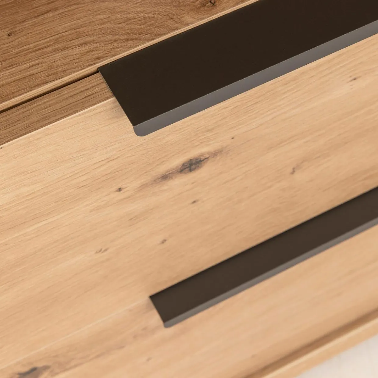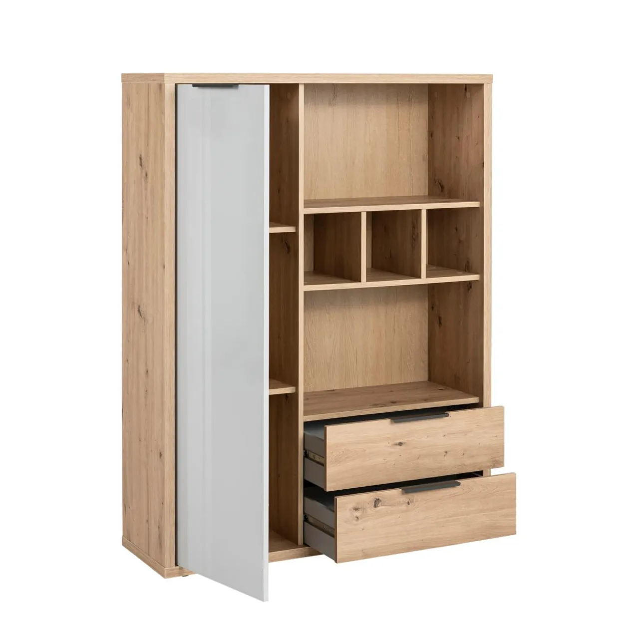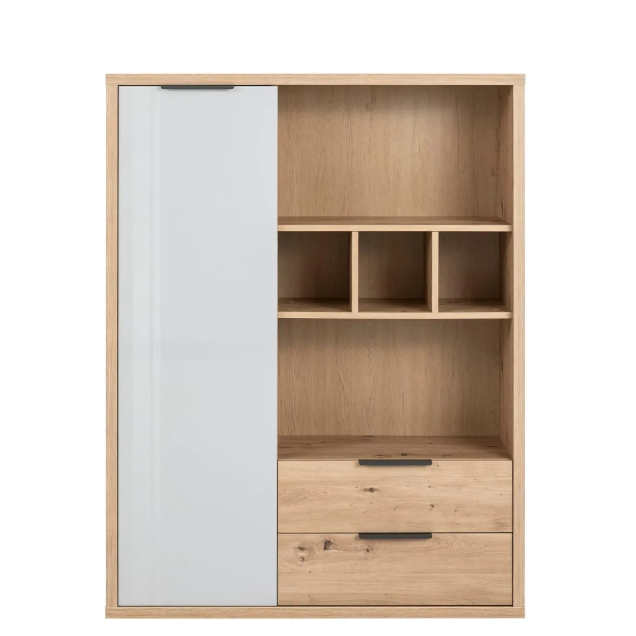 - Jasny kolor dębu artisan i szarego wykończonego w połysku dopasujesz do wielu aranżacji – o neutralnych kolorach, a także wyraźnych, pełnych energii.