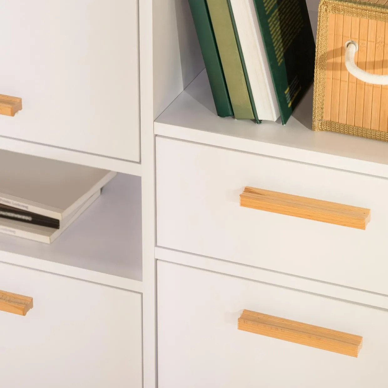 Białe meble z drewnem bukowym