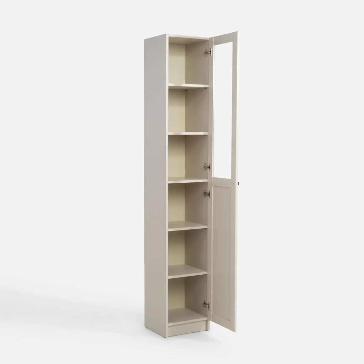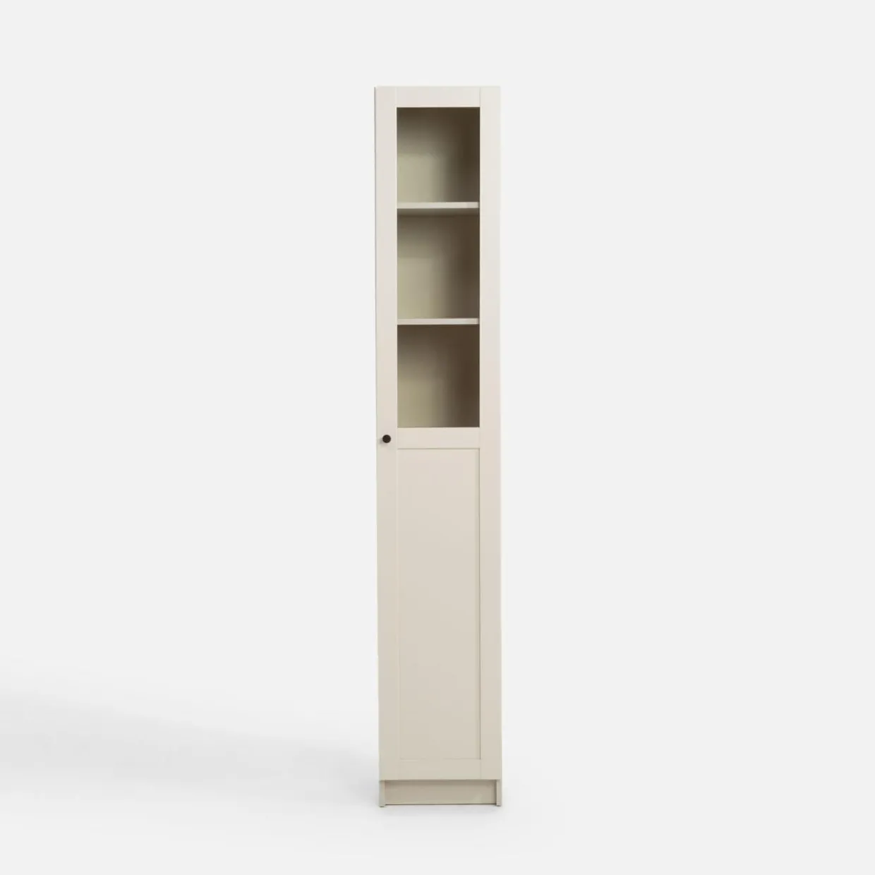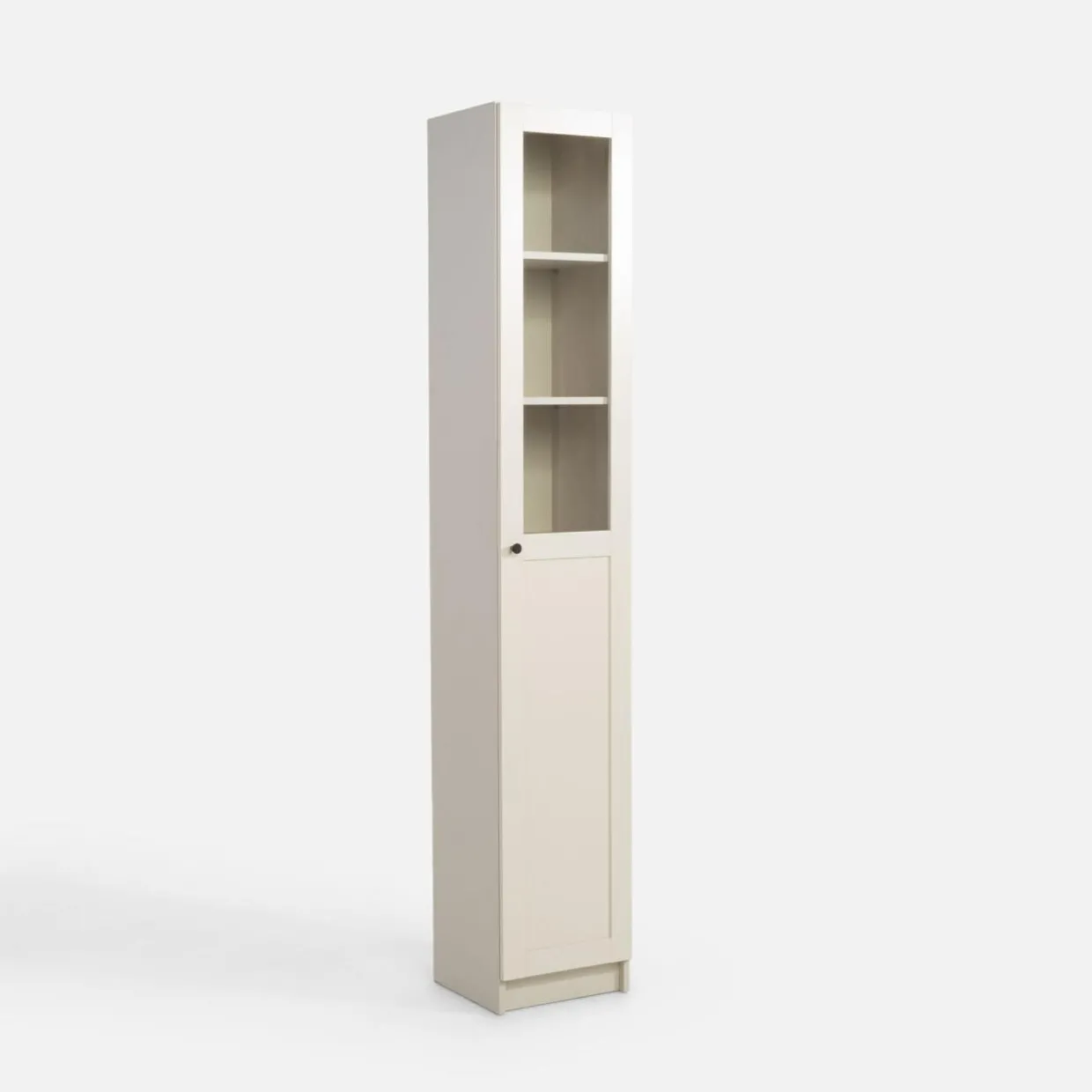 - Wąski mebel świetnie sprawdzi się jako uzupełnienie przestrzeni między pozostałymi meblami a ścianą lub zabudowa we wnęce.