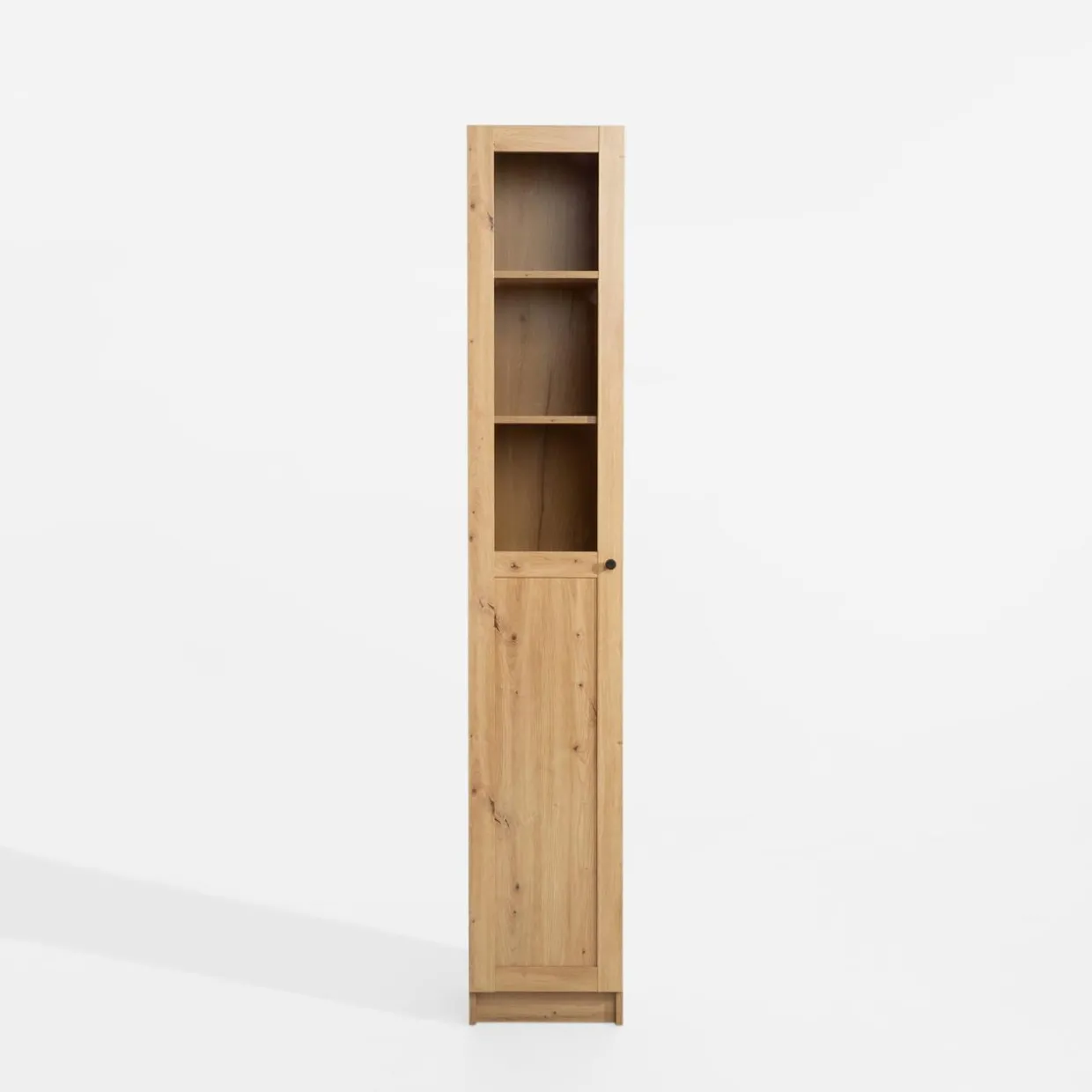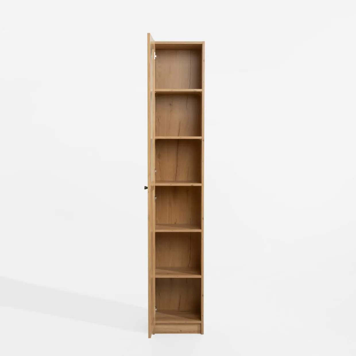 - Wąski mebel świetnie sprawdzi się jako uzupełnienie przestrzeni między pozostałymi meblami a ścianą lub zabudowa we wnęce.
