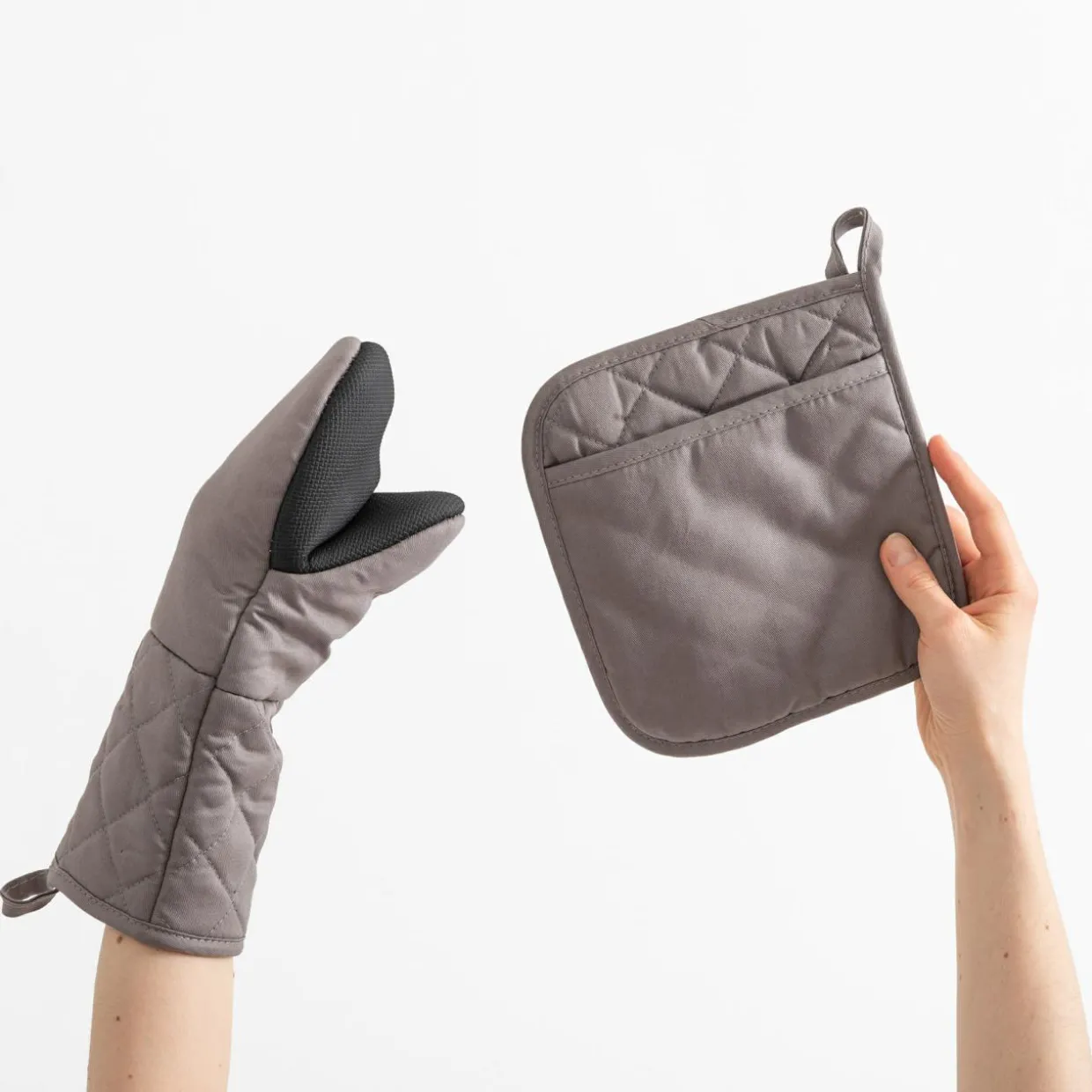 Uzupełnij wystrój w kuchni o praktyczną rękawicę i podkładkę kuchenną – wygodniej i bezpieczniej podniesiesz nagrzane naczynie.