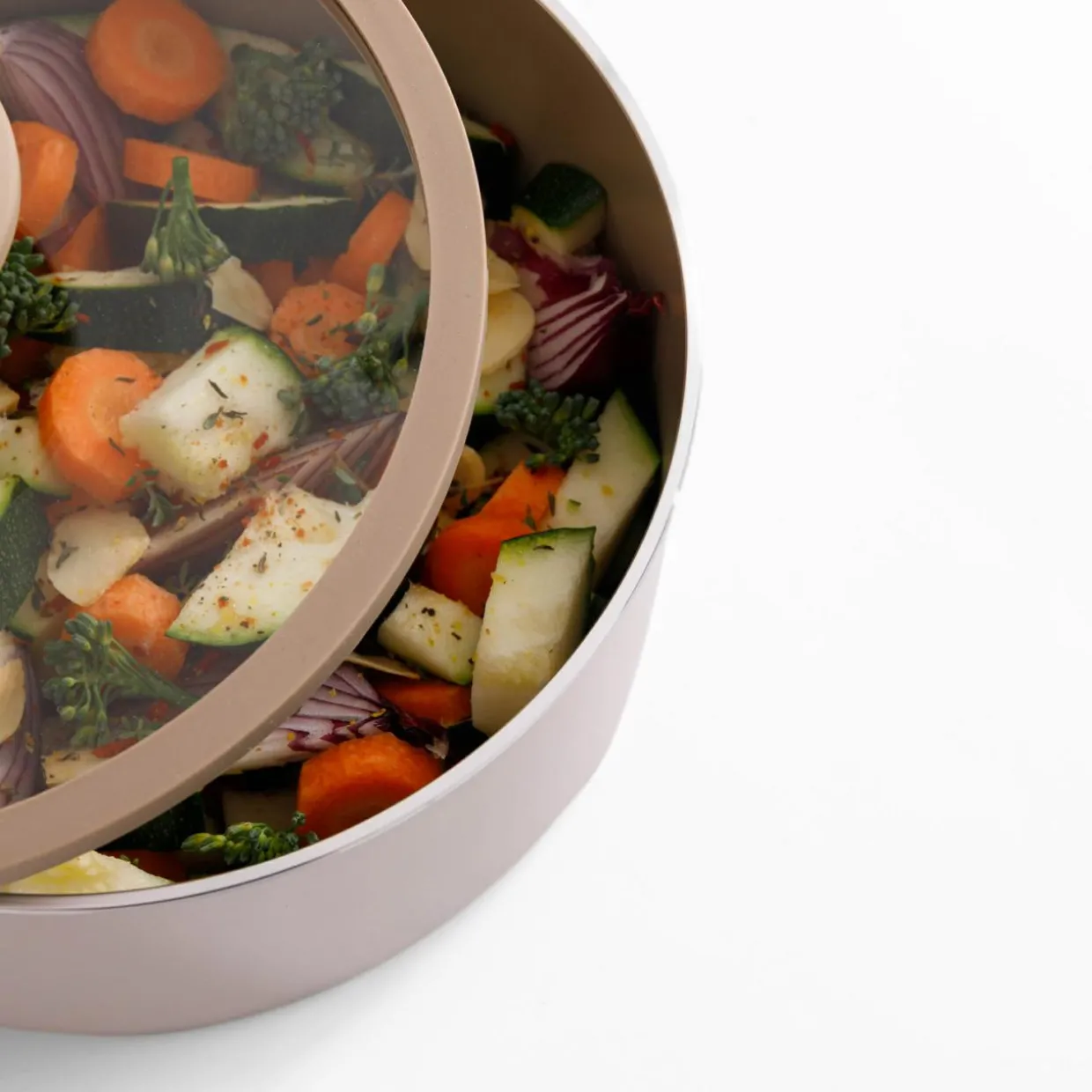 Naczynie jest wykonane z lekkiego aluminium i pokryte podwójną ceramiczną i nieprzywierającą powłokę. Przyrządzisz w nim zdrowsze posiłki.