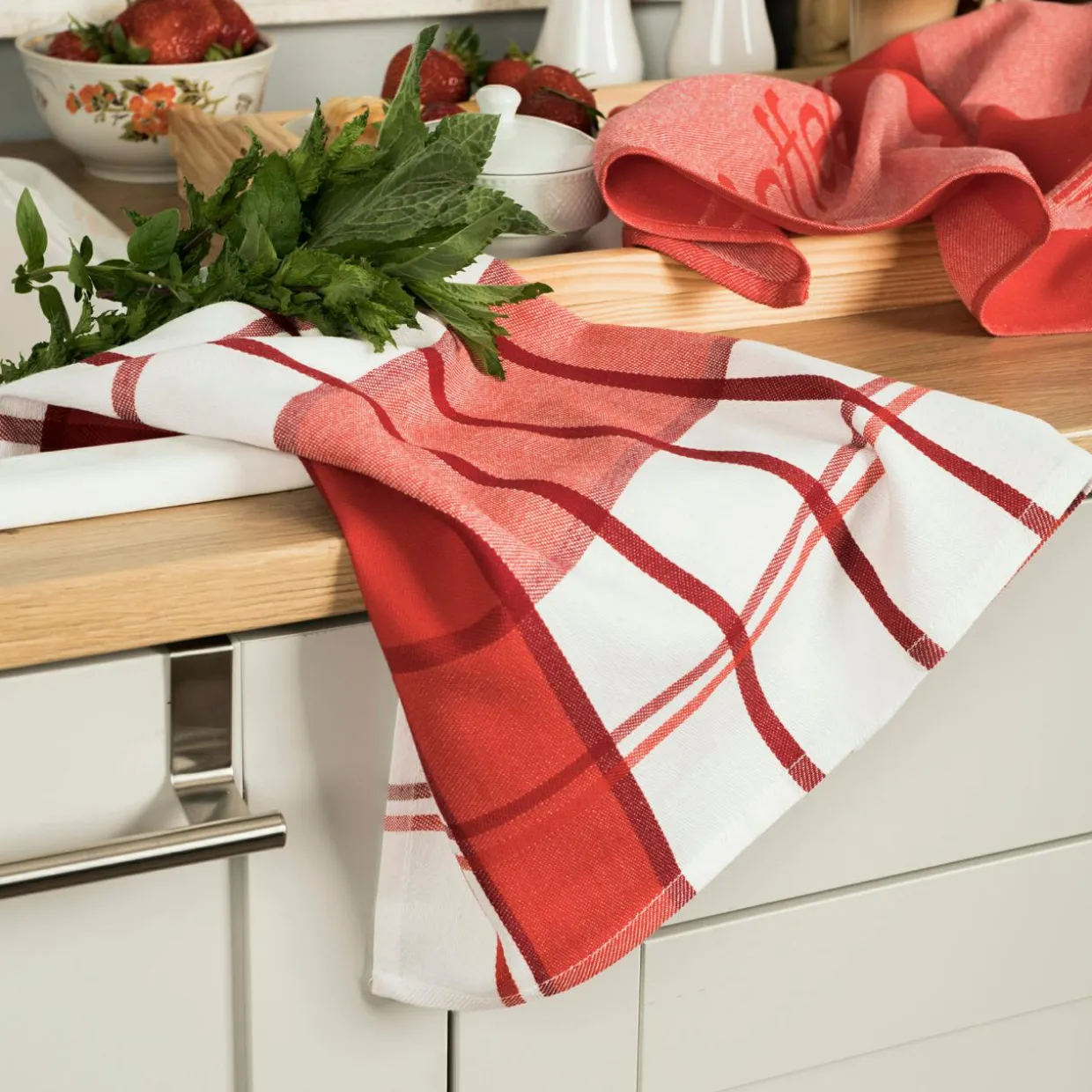 Ścierka KRATI wykonana w 100% z bawełny to doskonały wybór do każdej modnej kuchni — czerwone minimalistyczne pasy podkreślą charakter wnętrza, dodatkowo go nie przytłaczając.