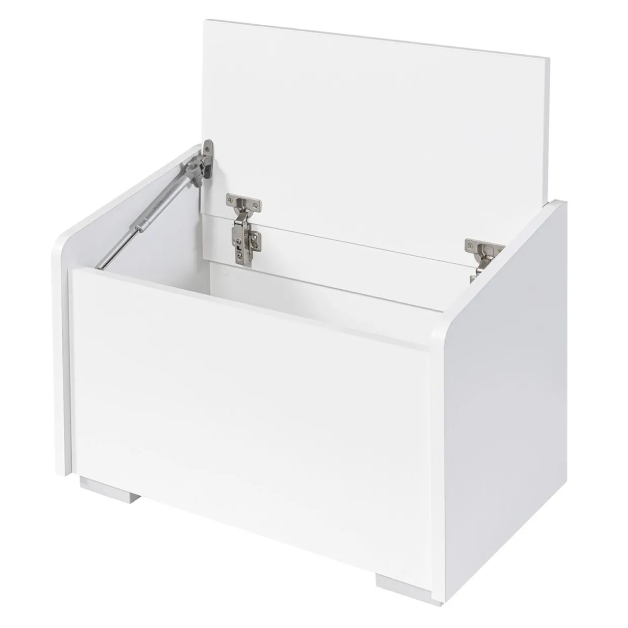 - Zawiasy ze spowalniaczem ochronią drobne palce dziecka przy przypadkowym wypuszczeniu pokrywy skrzyni.