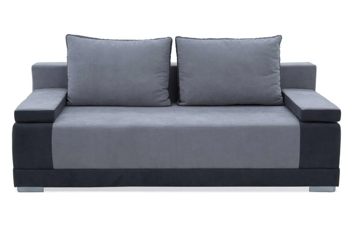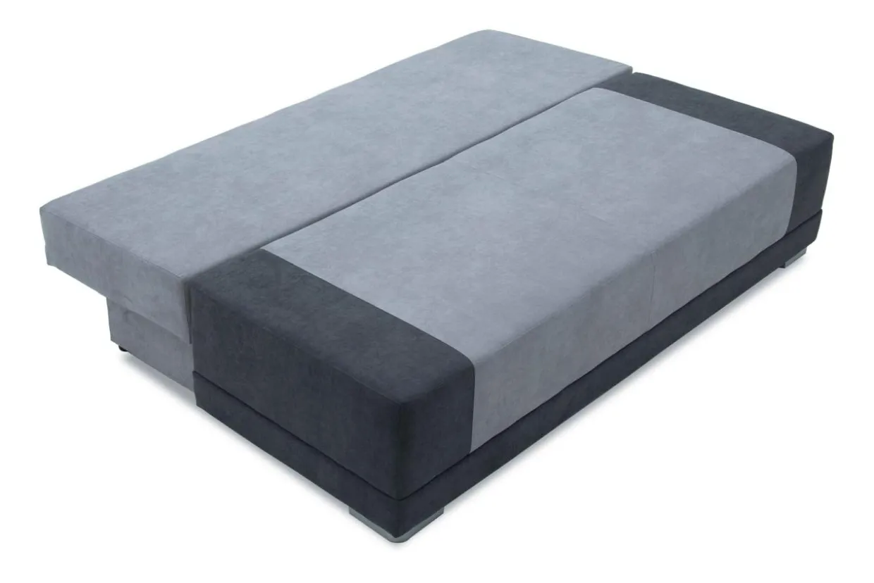 Dwukolorowa sofa w jasnym i ciemnym odcieniu szarości zwiększa możliwości aranżacyjne i sprawia, że mebel prezentuje się znacznie ciekawiej niż w jednolitym kolorze. A jeśli odwiedzą nas goście możemy wykorzystać wbudowaną funkcję spania z mechanizmem ułatwiającym rozkładanie i pojemnikiem znajdującym się pod siedziskiem.