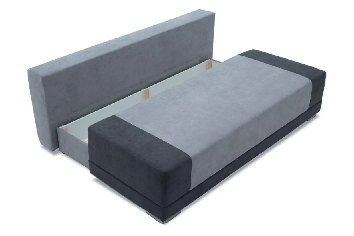 Pod siedziskiem znajdziemy pojemnik na pościel.