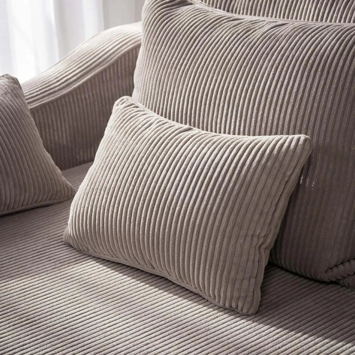 Sofa jest tapicerowana miękką i miłą w dotyku tkaniną welurową LINCOLN, o strukturze sztruksu.