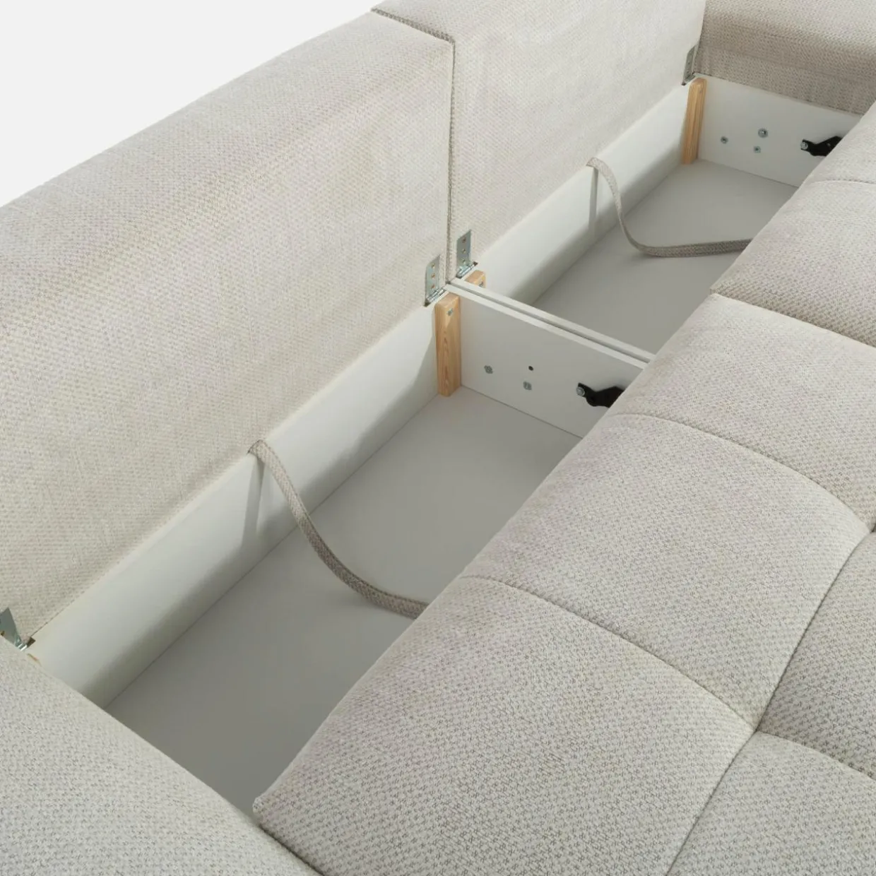 - Sofa podzielona jest na 2 części. Jeśli chcesz, możesz rozłożyć tylko jedną, oszczędzając nieco miejsca w salonie.
