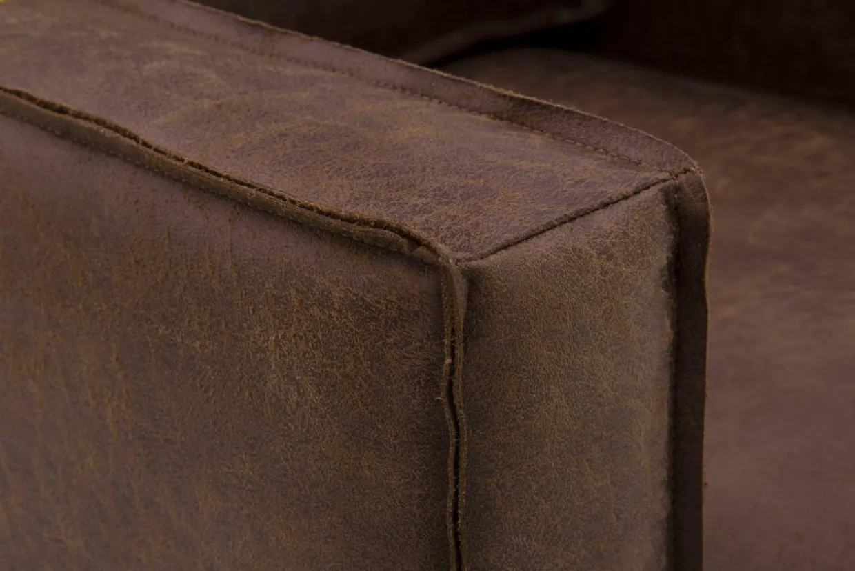 - Tkanina, którą pokryto sofę, imituje fakturę prawdziwej skóry, co podkreśla naturę stylu industrialnego.