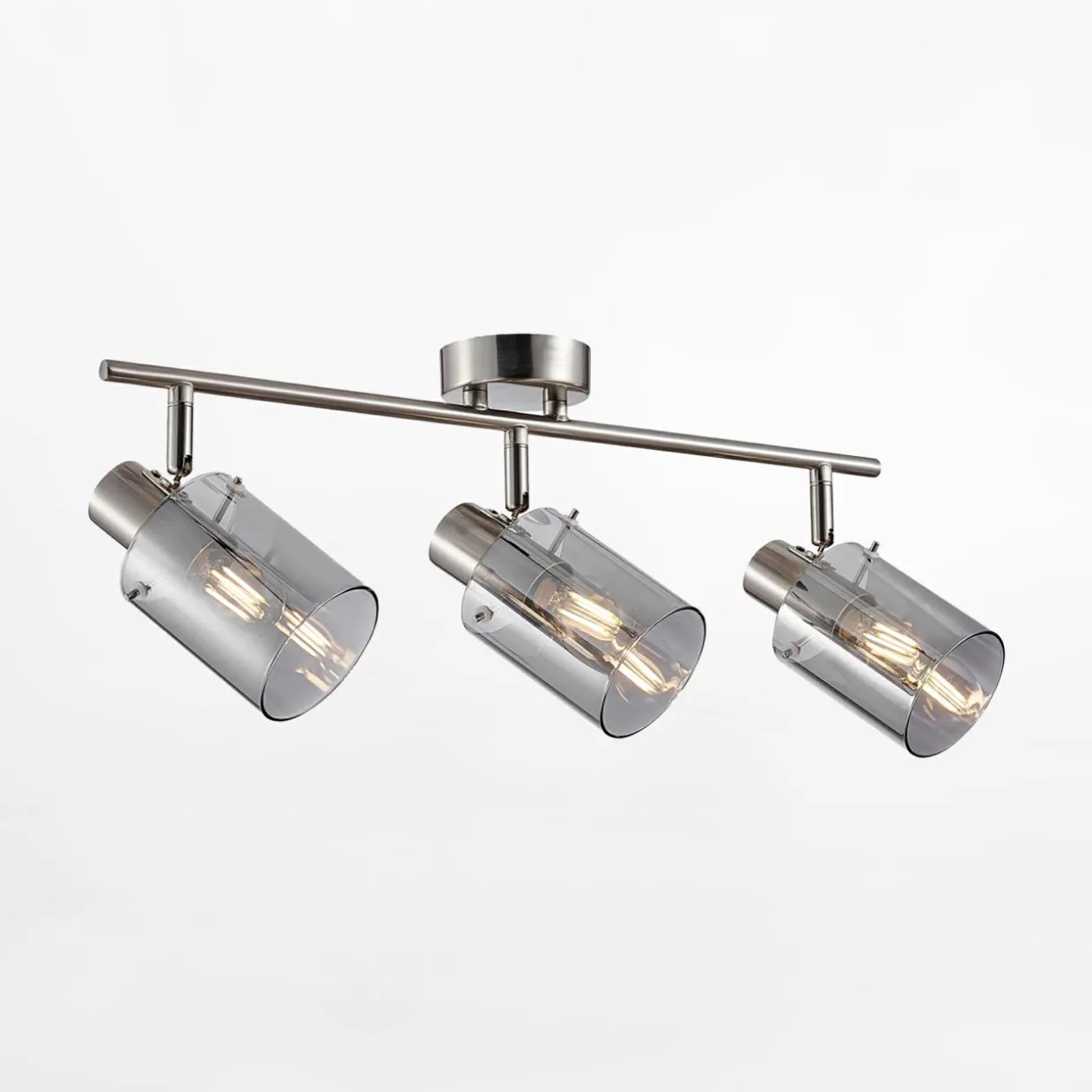 - Wykończenie spotu SARDO łączące przydymione szkło kloszy z metalicznym srebrem oprawy dopasujesz do wnętrz o nowoczesnej, chłodnej estetyce.
