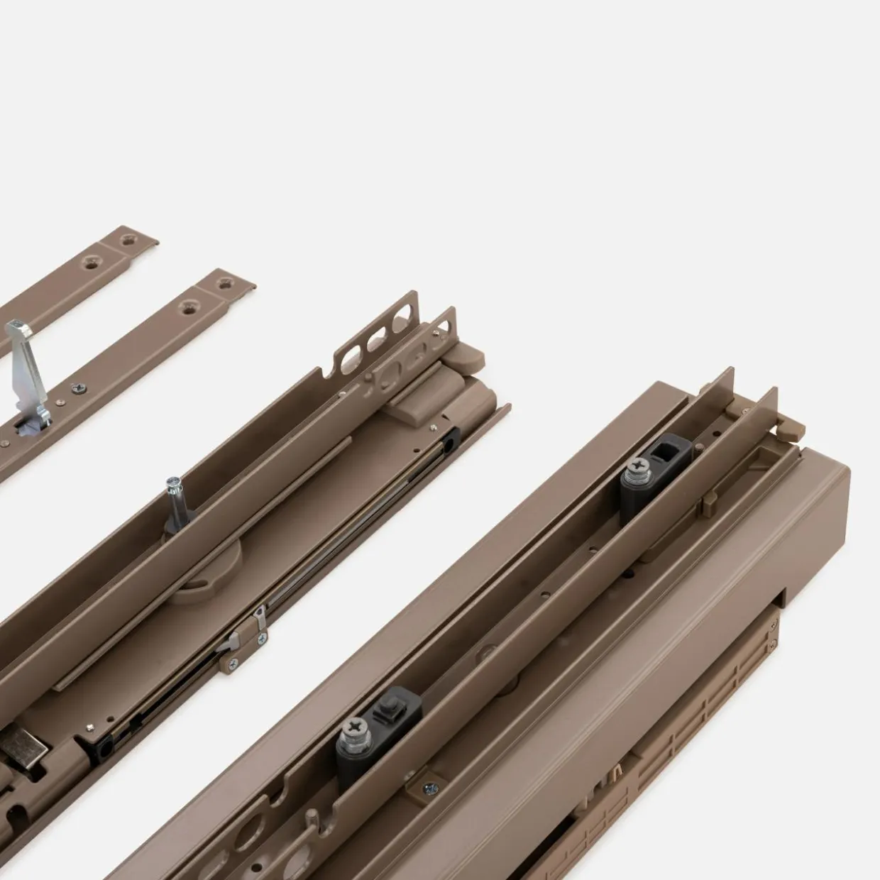 Wszystkie te elementy zaprojektowane ze smakiem i dbałością o detale, zostały przystosowane do montażu na wysuwanych prowadnicach.