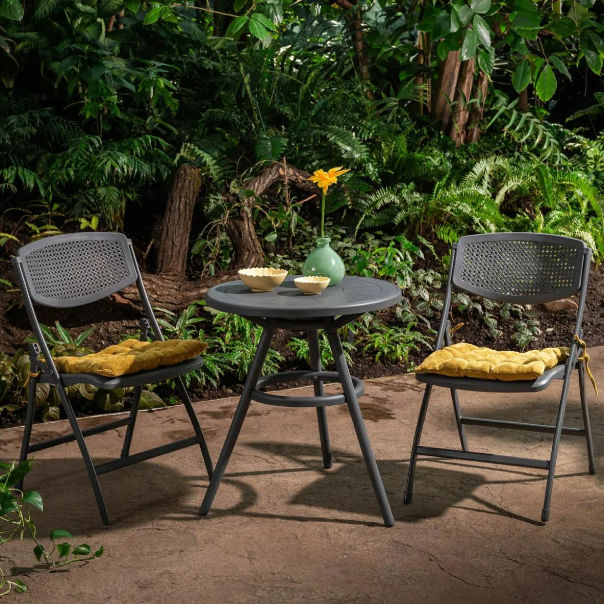 Do stołu dobierz krzesło HABDALA w tym samym kolorze, tworząc spójny komplet wypoczynkowy.