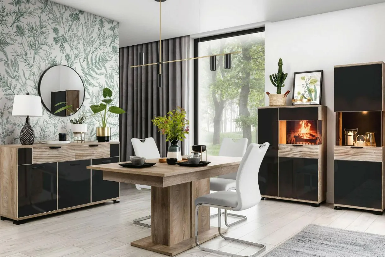 - Tradycyjne nogi stołu zostały zastąpione stylową, niezwykle elegancką kolumną.
