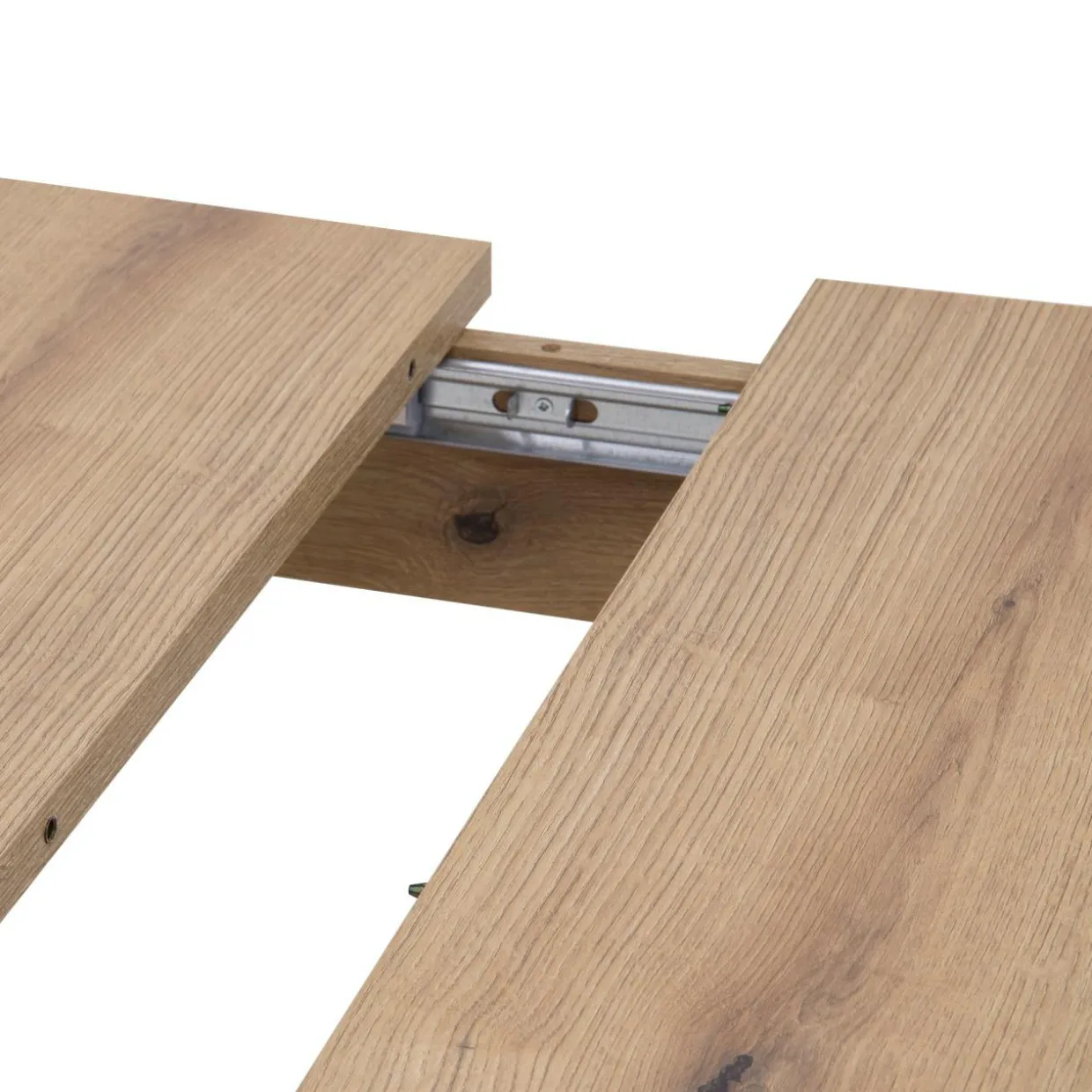 Stół został wyposażony w prowadnice kulkowe i jedną wkładkę, która zwiększa jego długość. Po skończonym posiłku schowaj wkładkę wewnątrz stołu i złoż blat.
