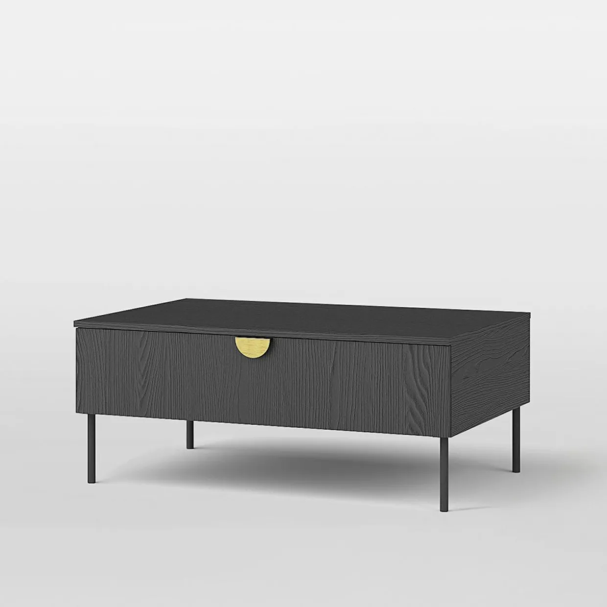 - Meble charakteryzuje czarne wykończenie. Ciemną i elegancką kolorystykę dopełnia rysunek drewna.