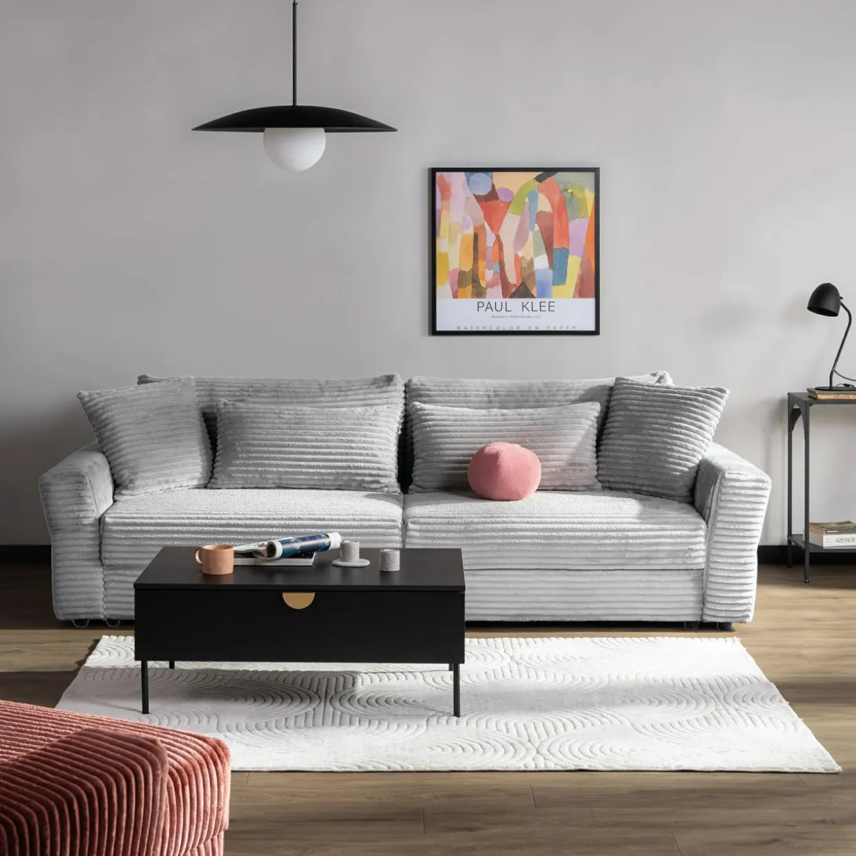 - Pod wysokimi nóżkami z łatwością utrzymasz porządek. Pod spodem zmieści się odkurzacz lub robot sprzątający.