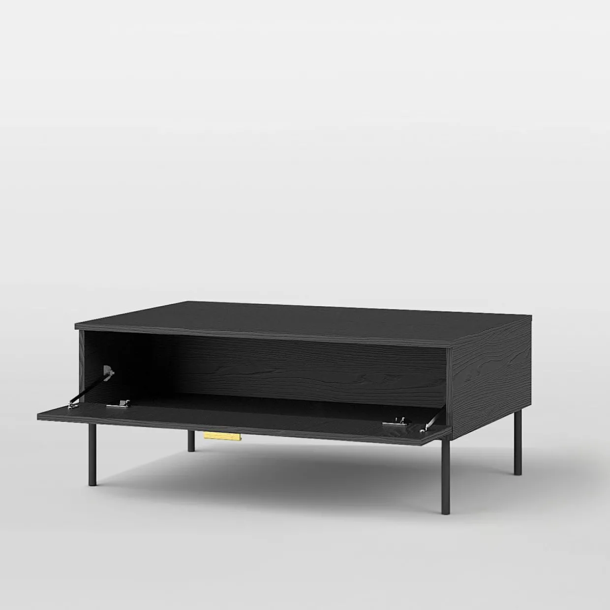 - Pod blatem znajduje się otwierana szafka. Schowaj do niej podkładki pod napoje, piloty do telewizora lub drobne przekąski.