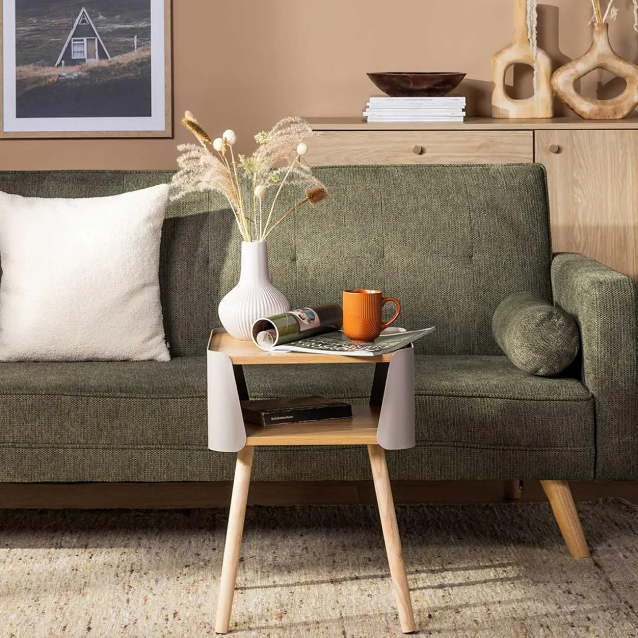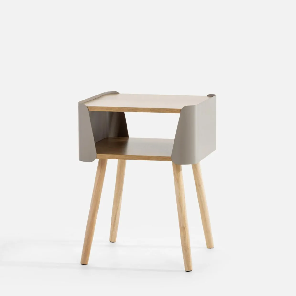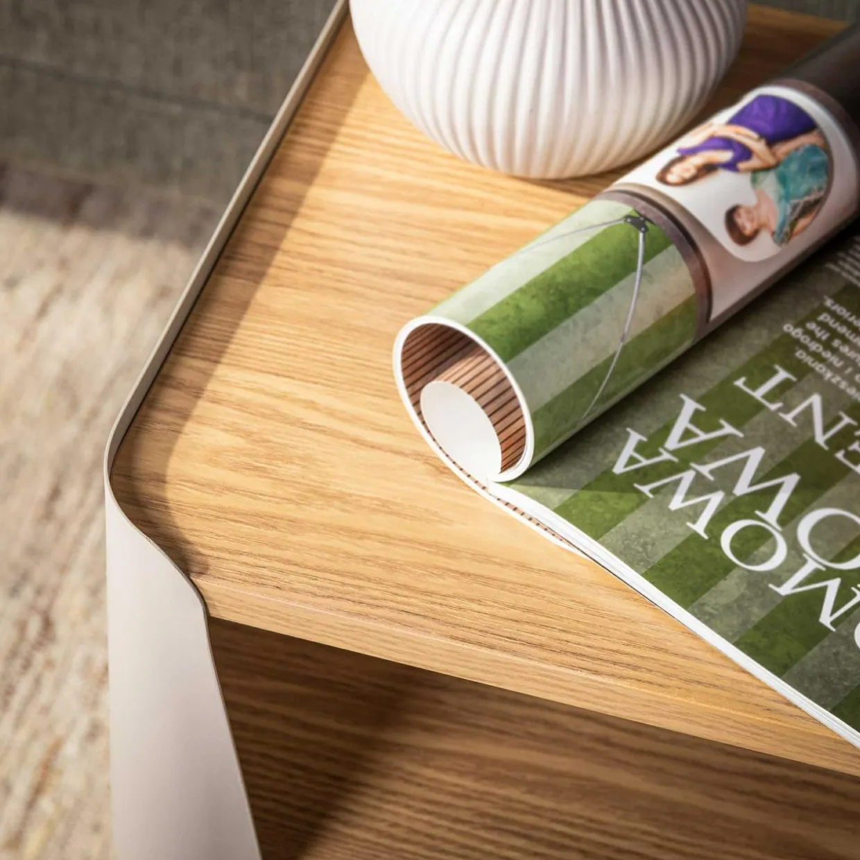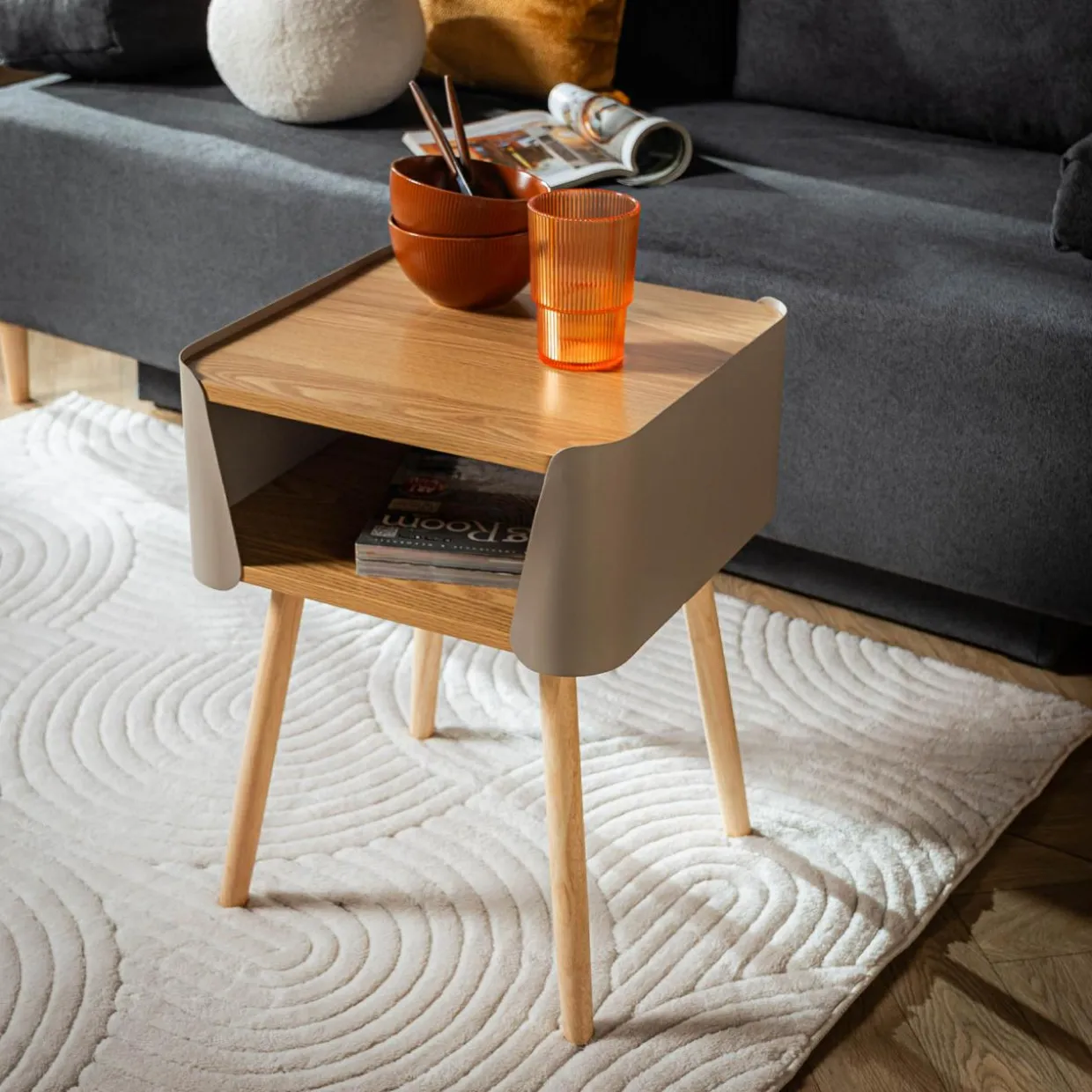 Stolik HANARU możesz postawić gdzie chcesz – obok fotela w salonie czy przy łóżku w sypialni lub w pokoju młodzieżowym. Połączenie beżowego stelaża z jasnym drewnem nada wnętrzu stonowaną, nowoczesną estetykę.