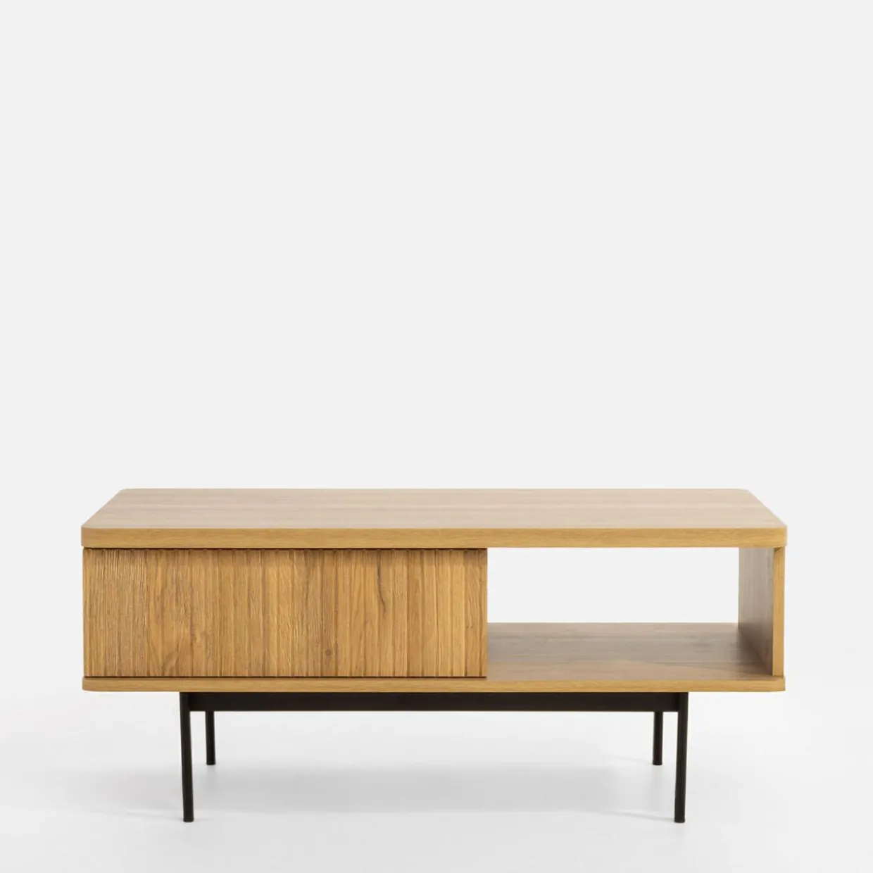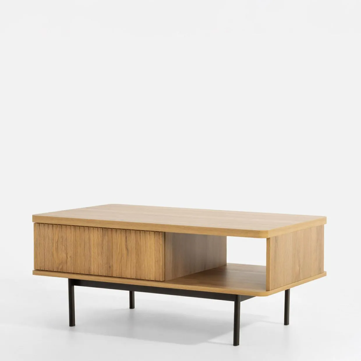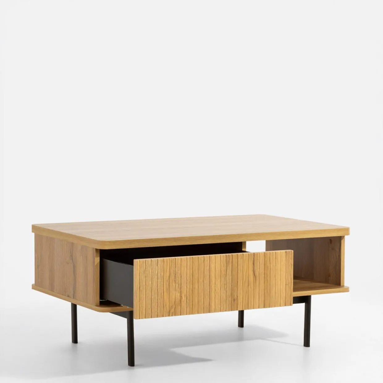 Ustaw stolik kawowy LUCIA w okolicy wypoczynku, żeby móc łatwo sięgnąć po książkę lub zaserwować przekąski do filmu. Wnęka i szuflada pozwolą Ci szybko sprzątnąć rzeczy przy niespodziewanej wizycie znajomych.