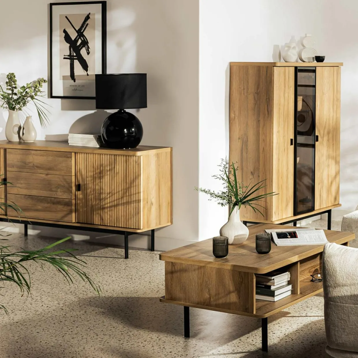 - Szuflady w komodzie i stoliku kawowym łatwo otworzysz dzięki funkcji push to open.