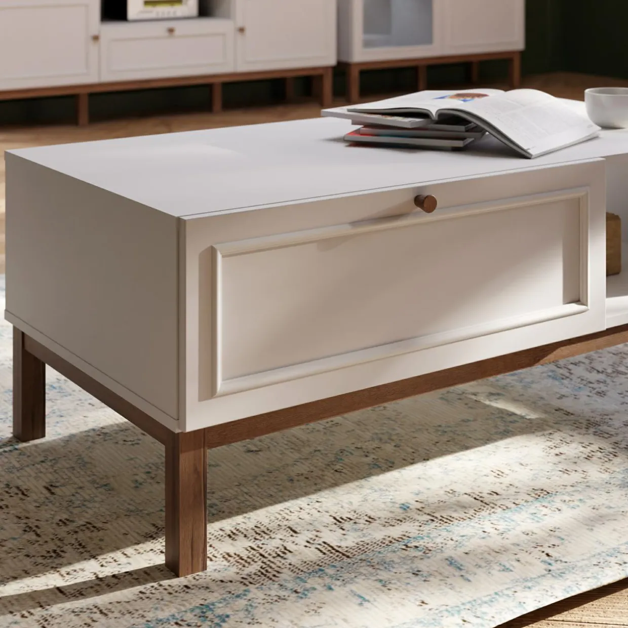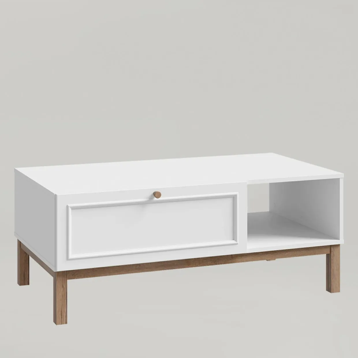 - W szerokiej szufladzie przechowasz dodatki do salonu – podkładki pod kubek, piloty do telewizora czy drobne przekąski.