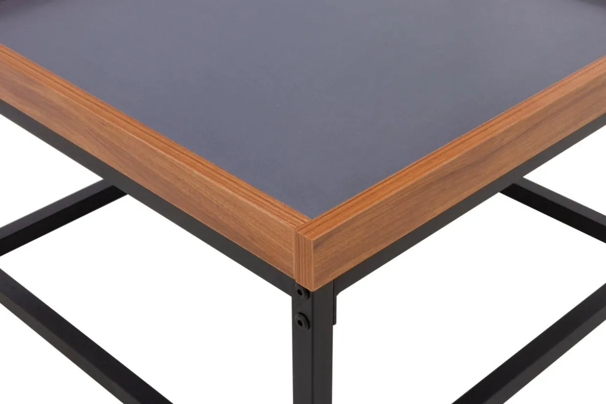 - Metalowa podstawa stolika stanowi doskonały punkt podparcia dla blatu z płyty wykończonego okleiną w ciemnoszarym kolorze