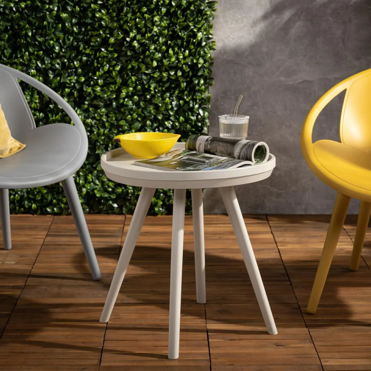 Stolik HAPPIANO jest niski i lekki, dlatego polubią go dorośli i dzieci. Podczas siedzenia na świeżym powietrzu odstawisz jego blat napoje i chłodne przekąski, które będą łatwo dostępne dla wszystkich.
