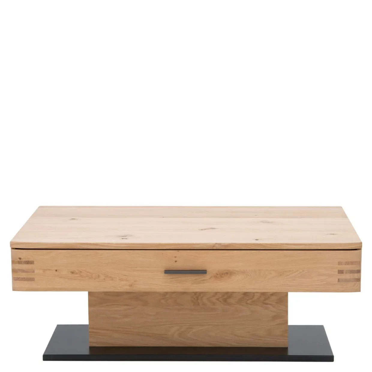 Wybarwienie w kolorze drewna dębowego w połączeniu z czarną podstawą i uchwytem z metalu sprawia, że stolik estetycznie prezentuje się w nowoczesnych, rustykalnych i industrialnych salonach.