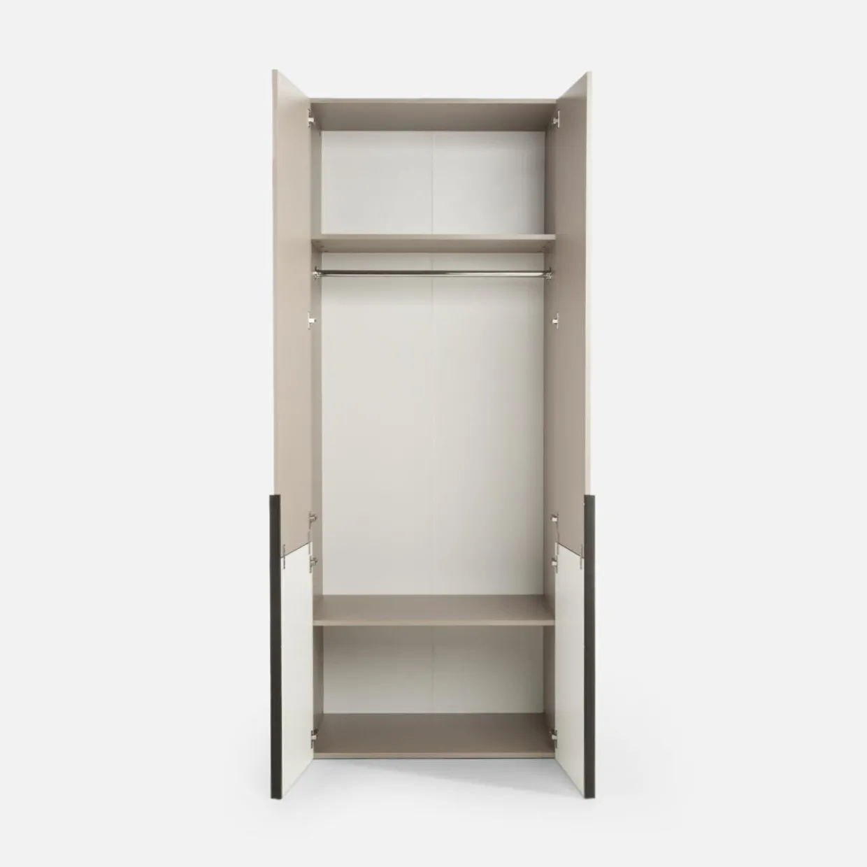 - We wnętrzu szafy znajdują się półki oraz drążek ubraniowy.