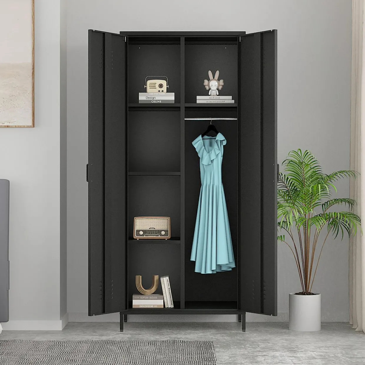 - Meble SOLANS w całości wykonane są z metalu malowanego proszkowo. Solidna budowa sprawdzi się w pokoju nastolatka i salonie, ale także w gabinecie domowym czy pracowni artystycznej.